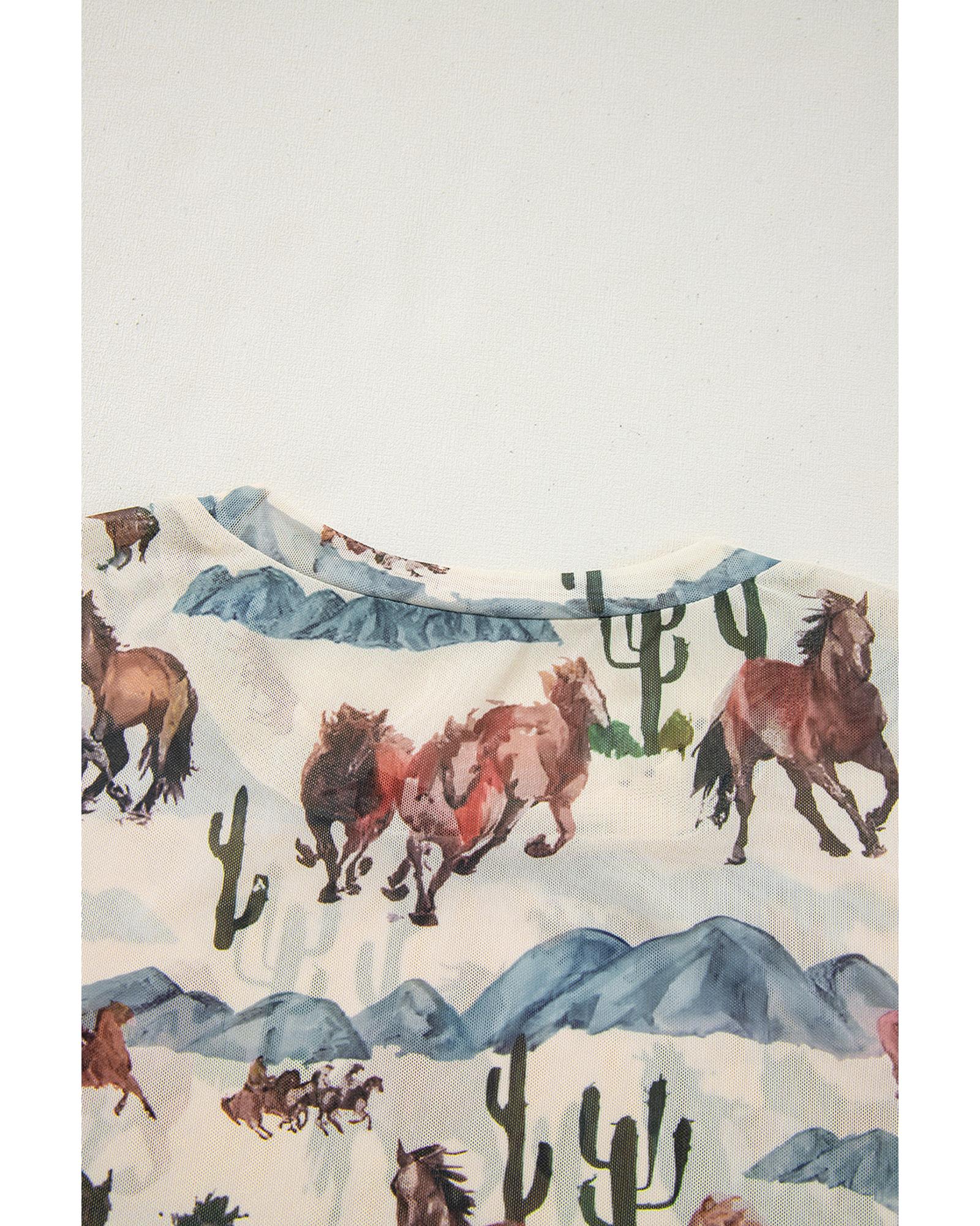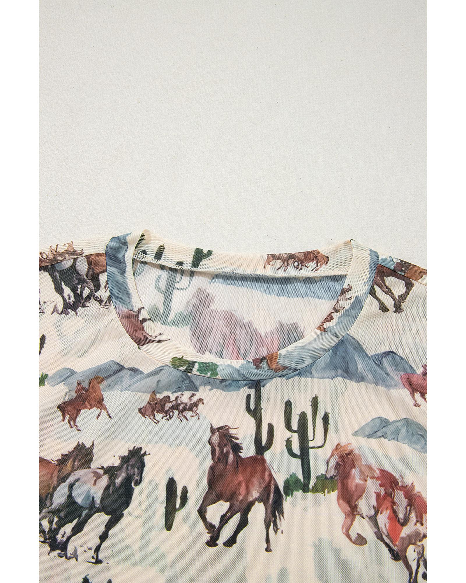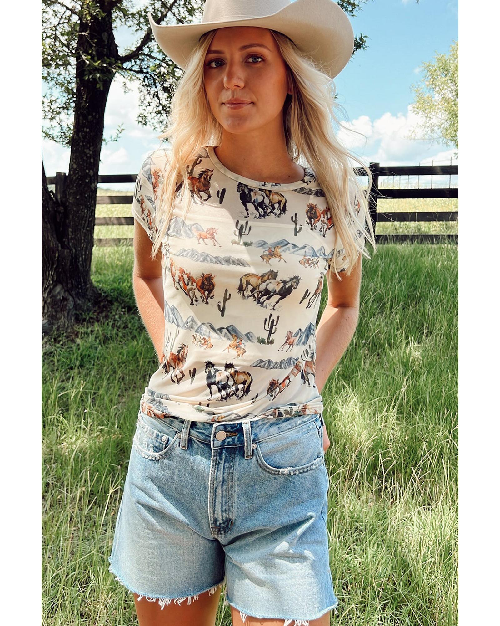 Beige Western Fashion Mustang River Printed Mesh T Shirt – XL