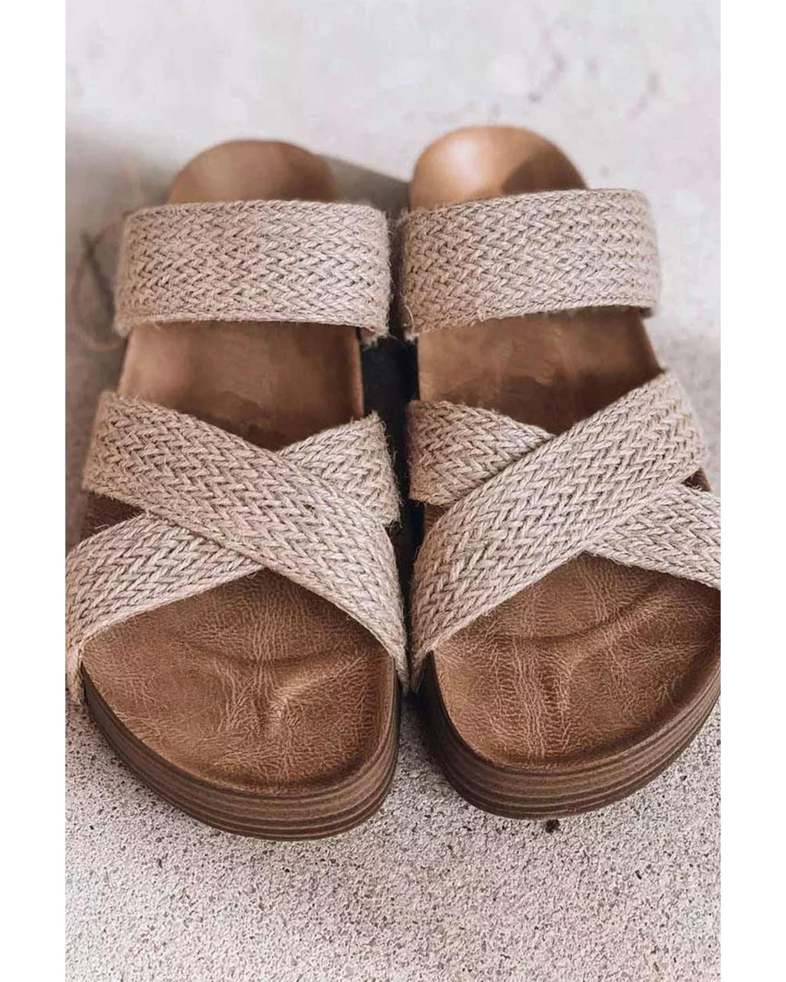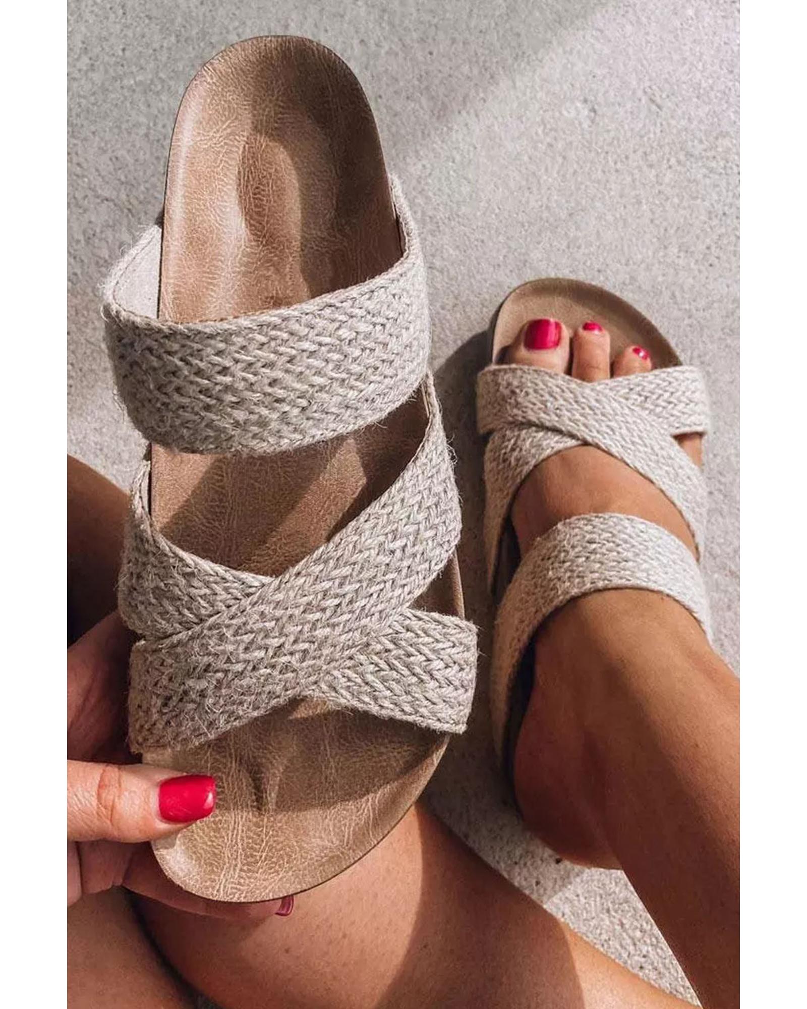 Beige Woven Cross Criss Hollowed Slip-On Slippers – 37 EU