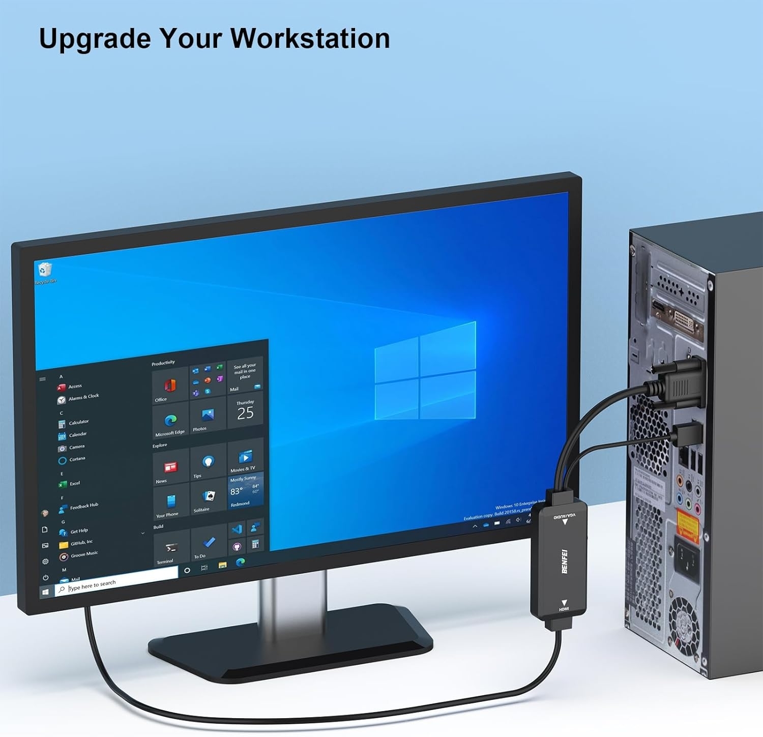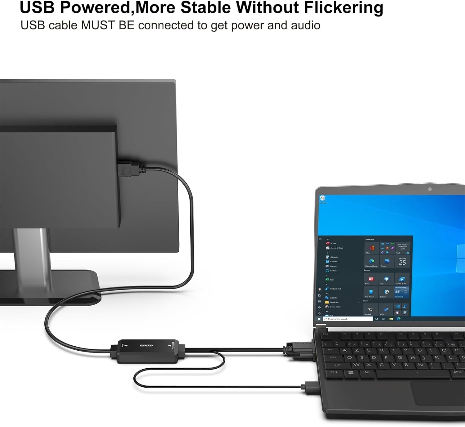 This VGA to HDMI cable provides a reliable digital connection from a VGA source device to an HDMI display, supporting high-definition video and audio transmission. It is designed for unidirectional use, connecting computers or other VGA-enabled devices to HDMI monitors or projectors.