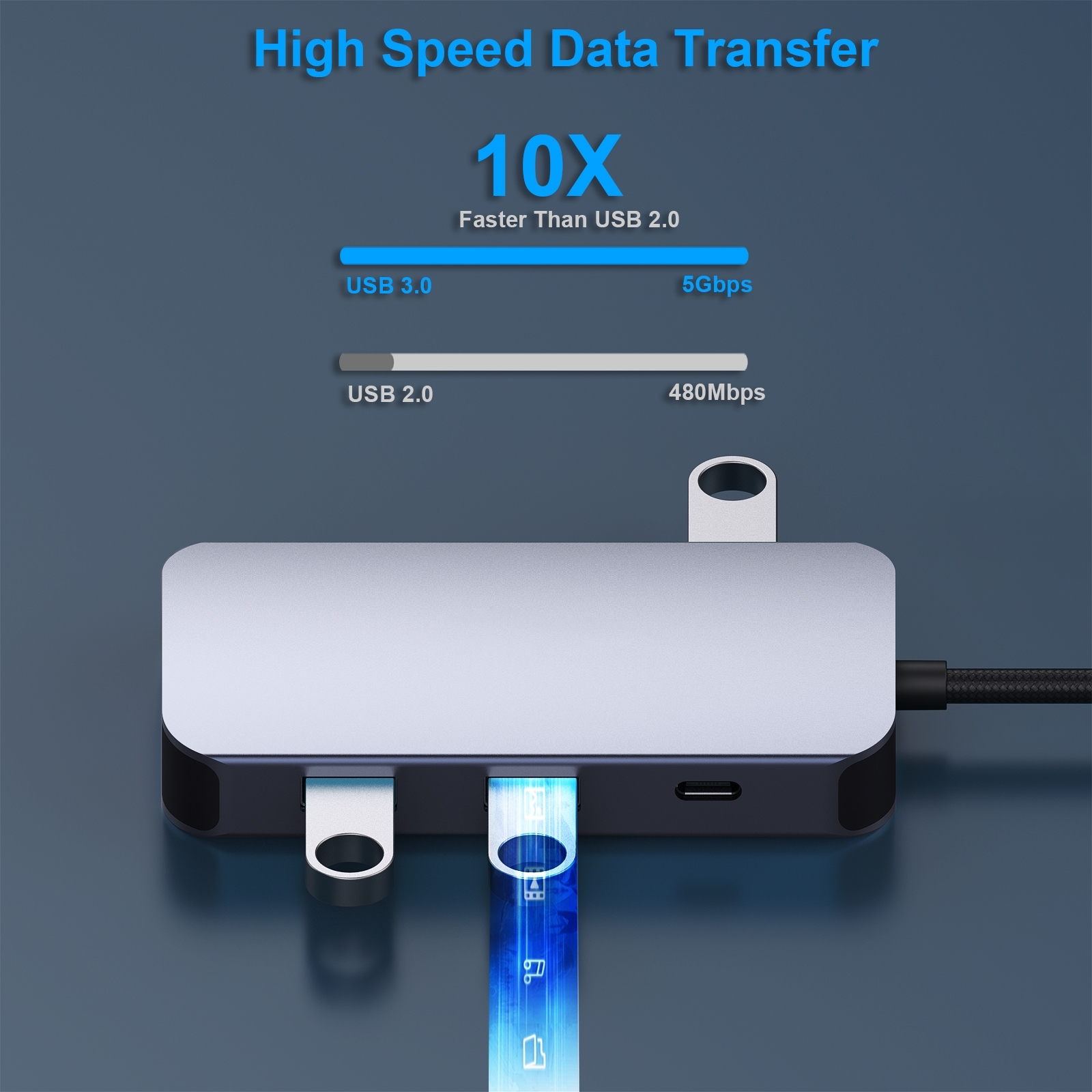- Transfer speeds up to 5Gbps via USB 3.0 ports and supports charging with up to 85W power delivery.