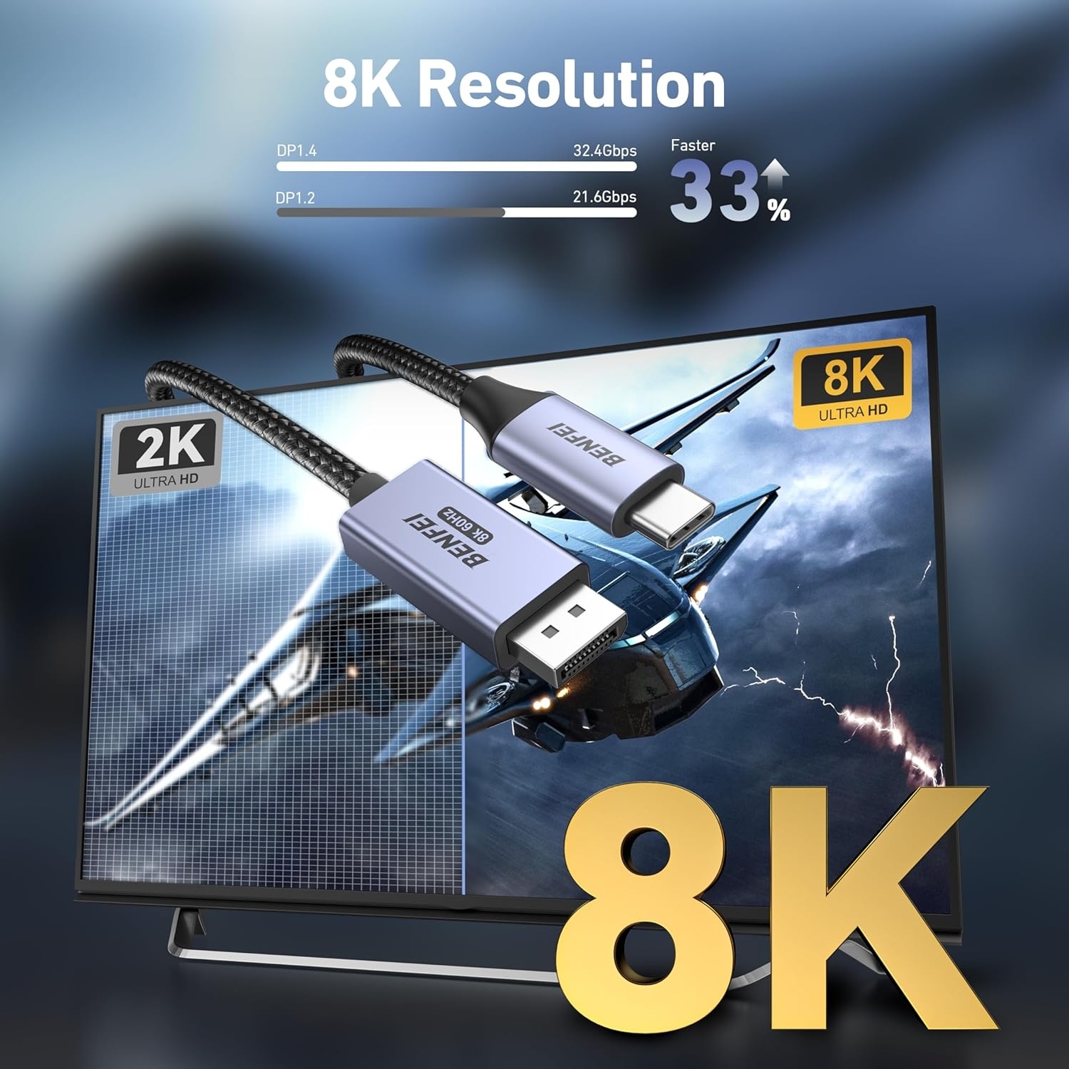 BENFEI 412GY Bidirectional USB-C to DisplayPort V1.4 (Support Thunderbolt 4, 8K@60Hz ) Cable 1.8M