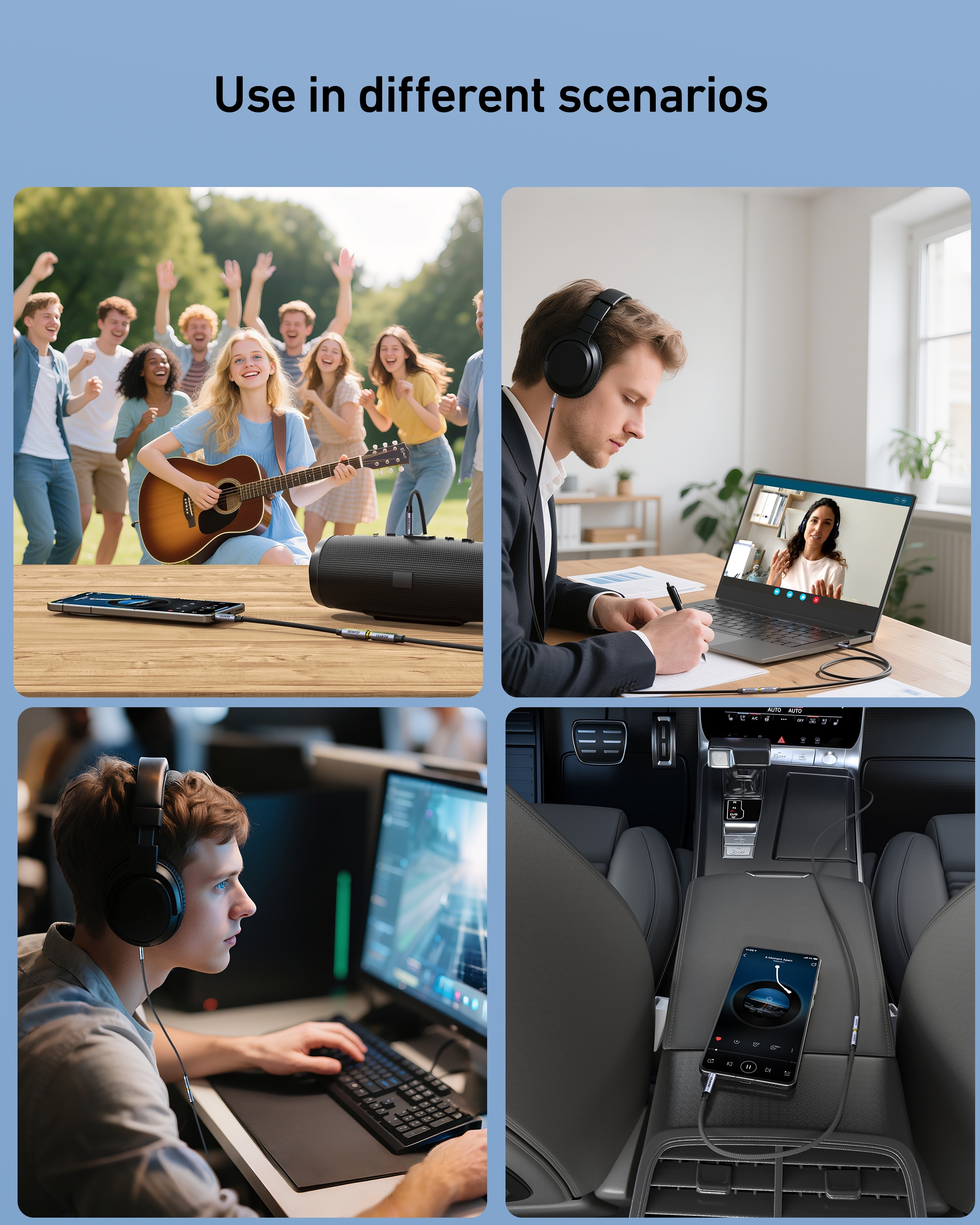 • Compatible with headphones, smartphones, tablets, PCs, laptops, speakers, and car stereos