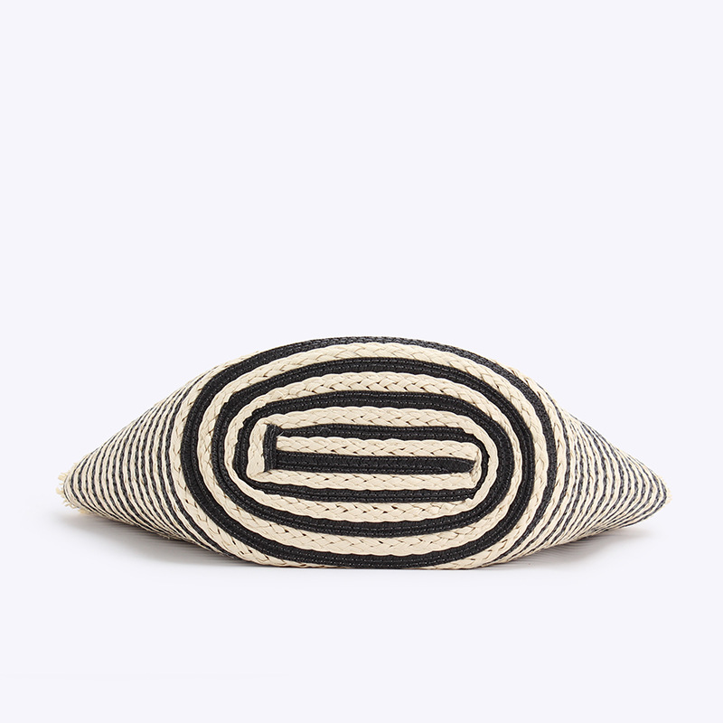 Black And White Stripes Handmade Large Capacity Striped Beach Tote Bag with Zipper and Inner Pocket – Summer Vacation Woven Shoulder Bag for Women
