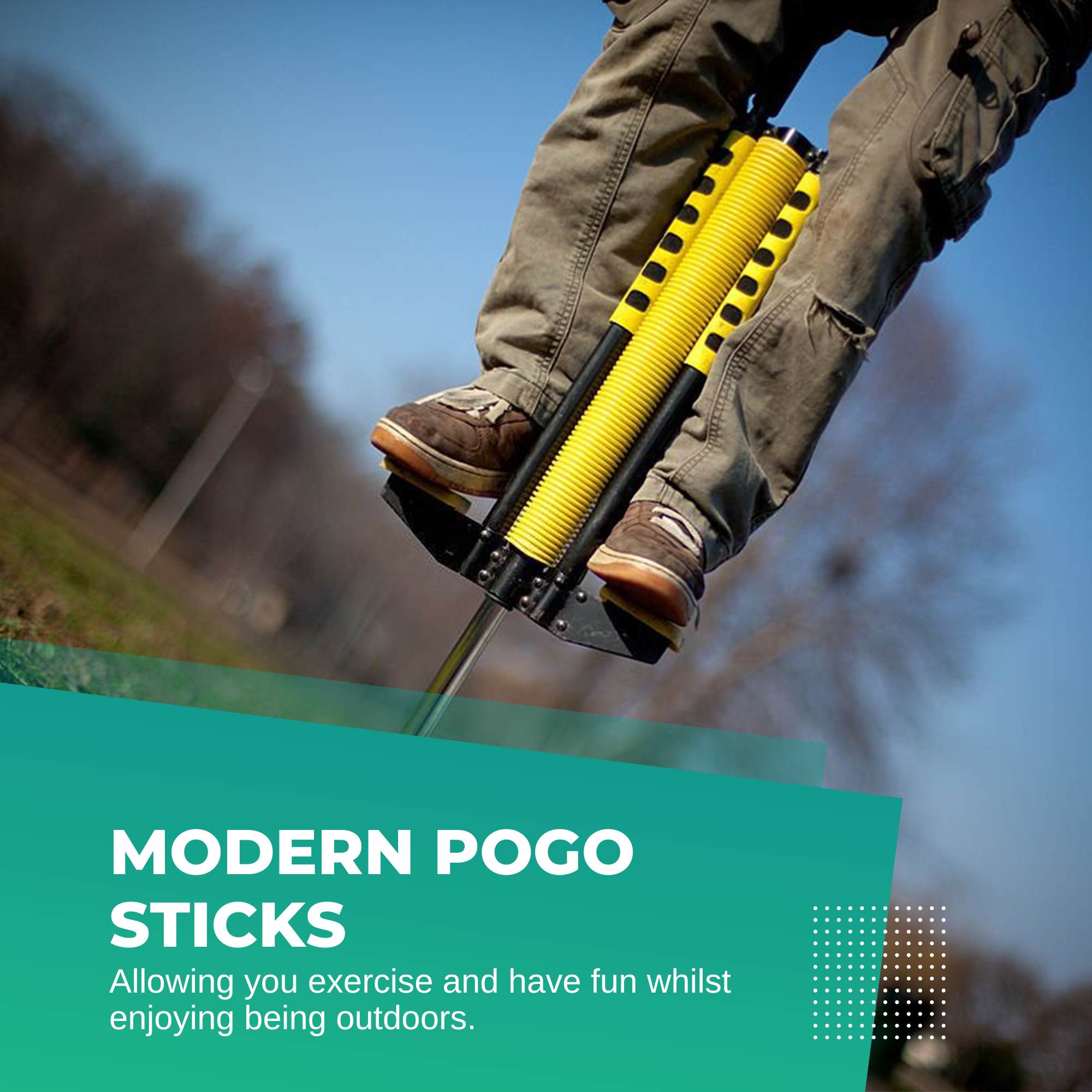 This large yellow and black pogo stick is designed for children, teenagers, and adults to enjoy outdoor exercise and fun. It provides a safe and engaging way to jump and stay active.