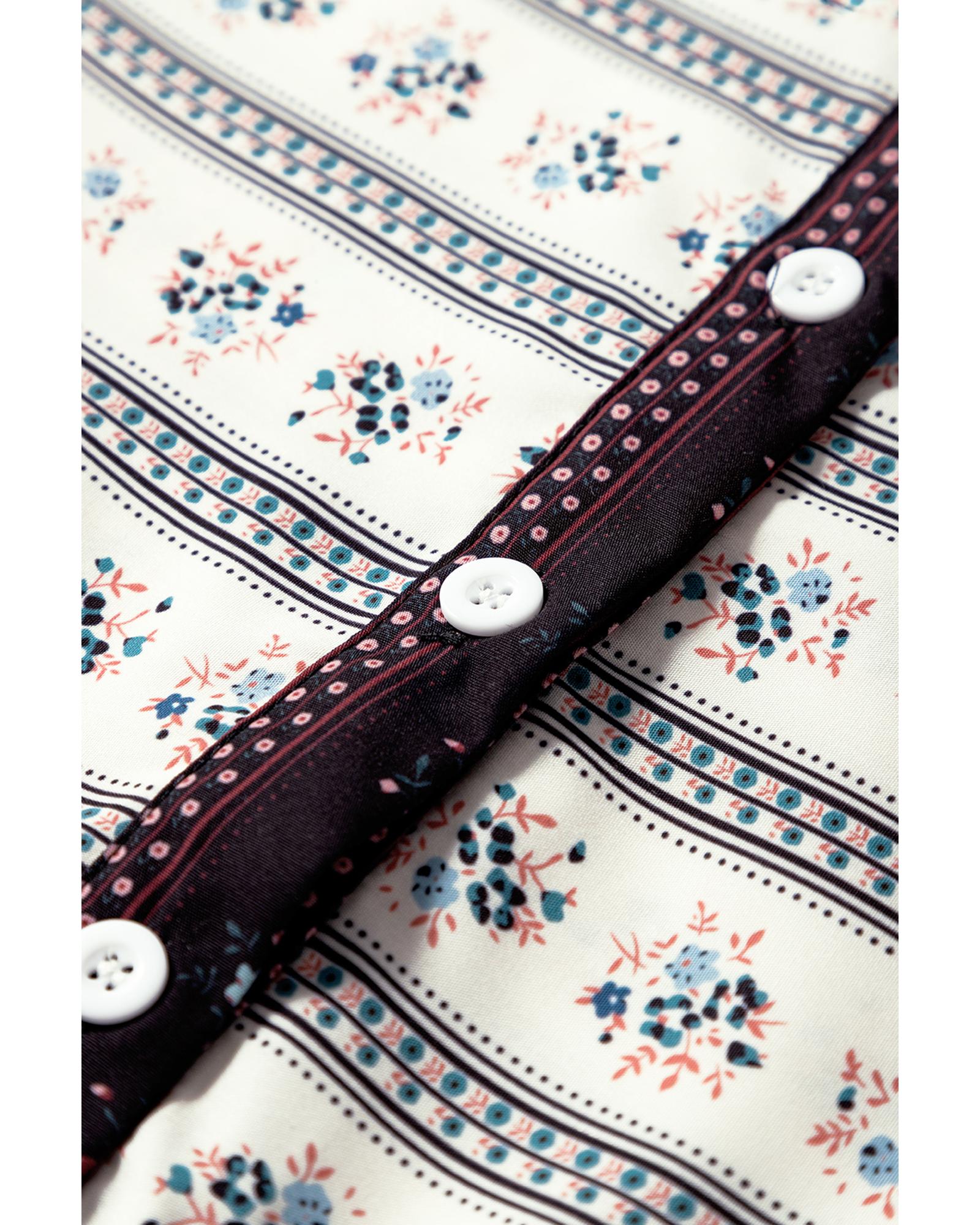 - Combination of floral prints and striped patterns