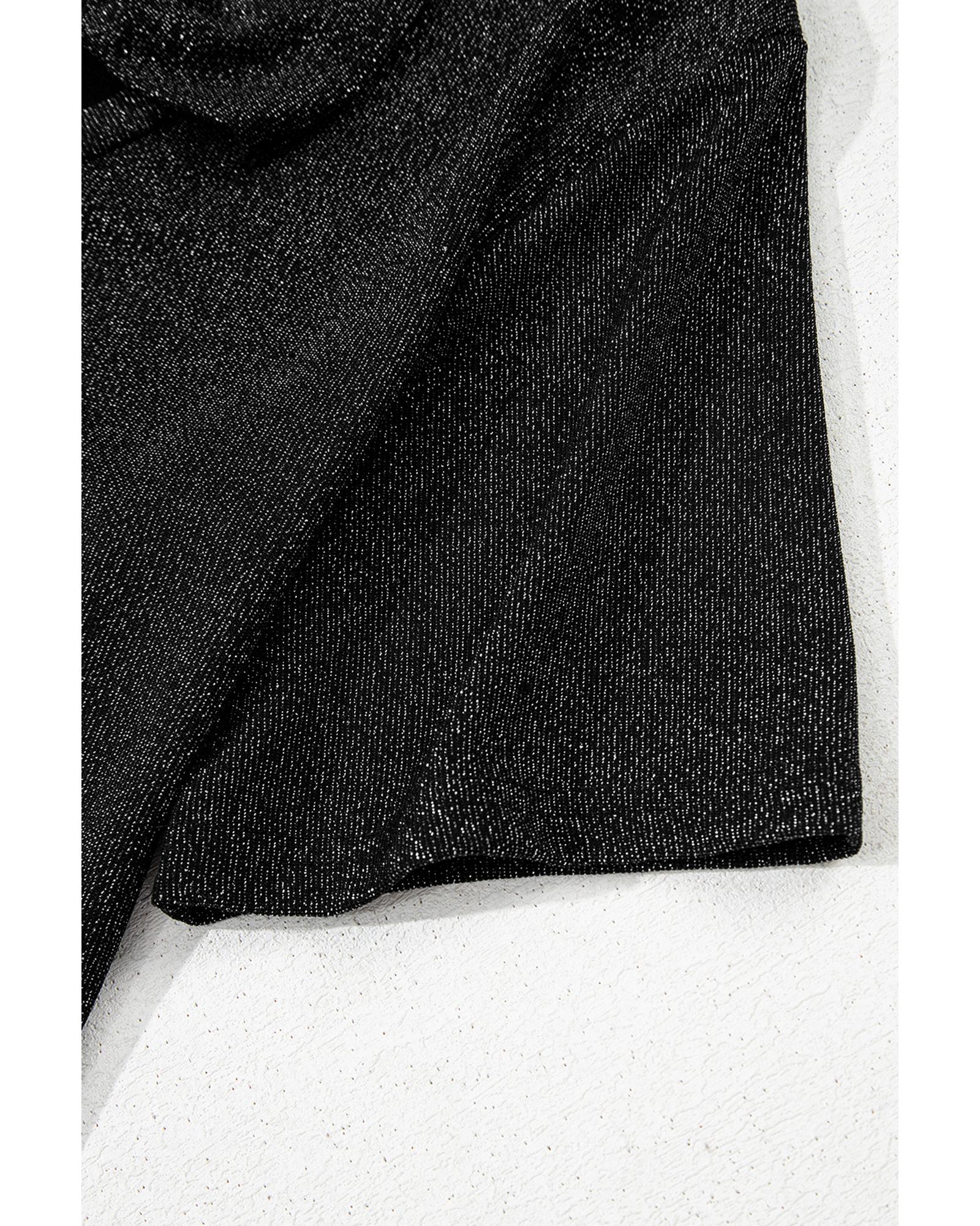 This glittery short sleeve top features a trendy fitted design with a charming bow detail on the back. Made from high-quality shimmering fabric, it offers a glamorous and chic look suitable for various occasions. The top is designed to add sparkle and style to any outfit, making it a versatile addition to your wardrobe.