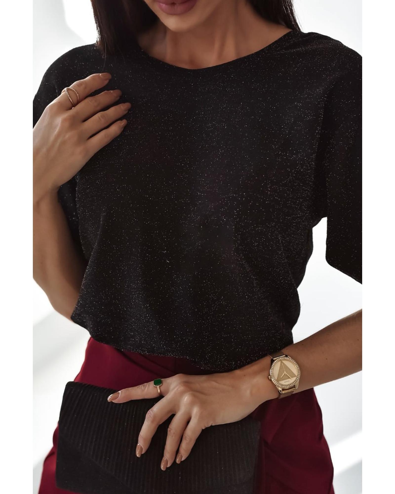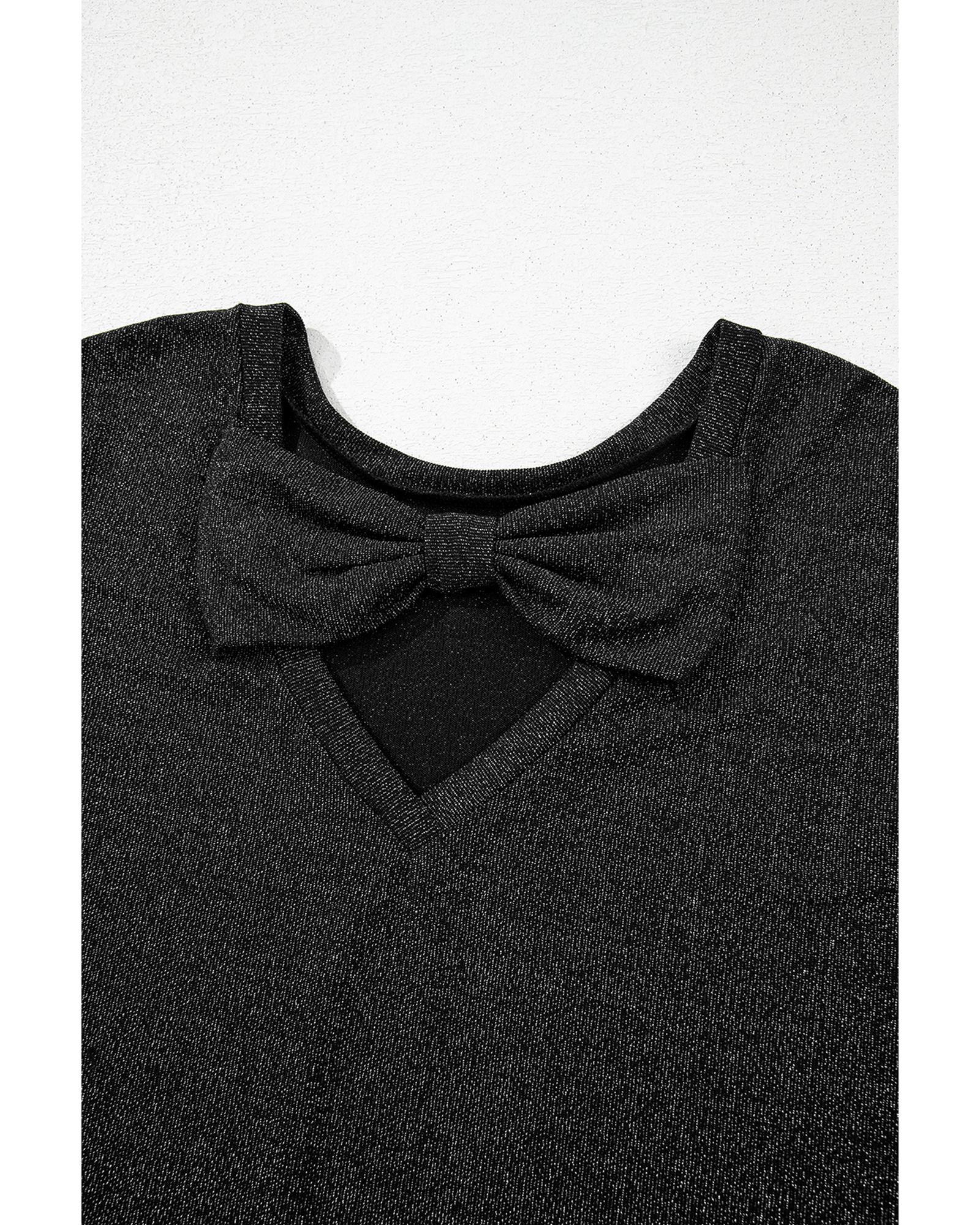Black Bow Decor Glittery Short Sleeve Top – XL