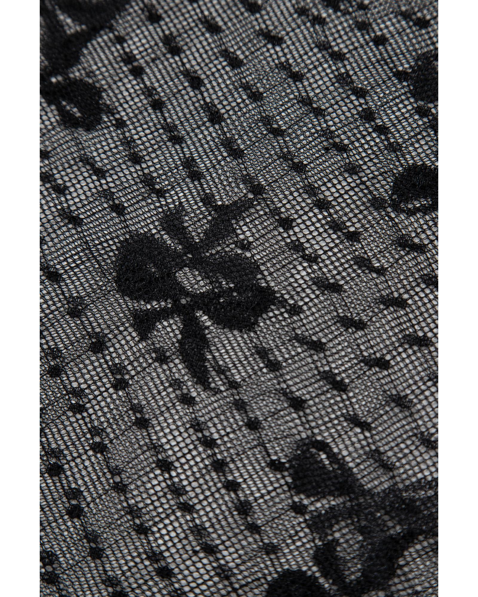 Black Bow Pattern Accent Mesh Long Sleeve Top – L