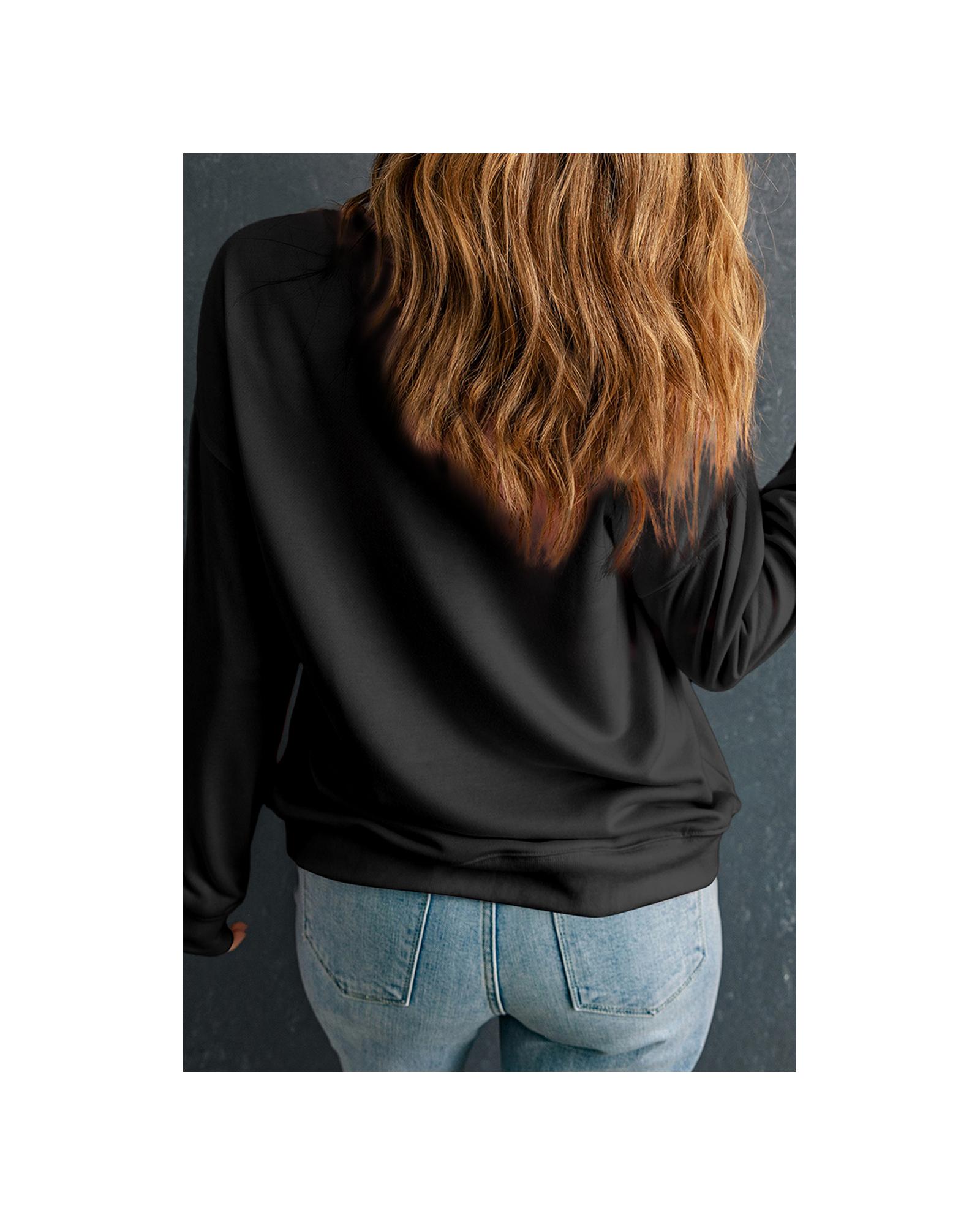 This plus size sweatshirt features a stylish black bow pattern and a relaxed drop shoulder design, making it suitable for both casual and dressier occasions. Its versatile style pairs well with jeans or leggings, offering comfort and fashion in one piece.