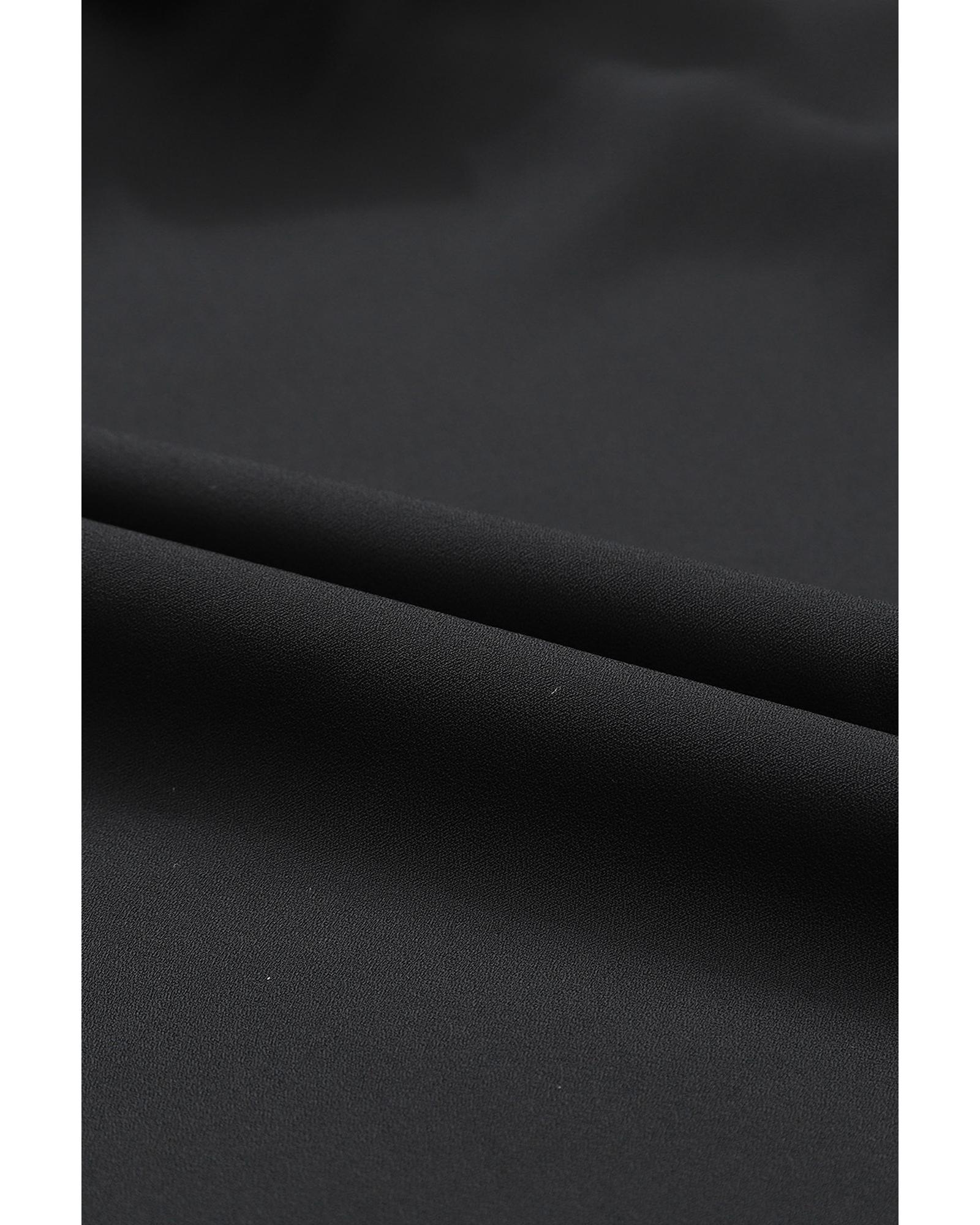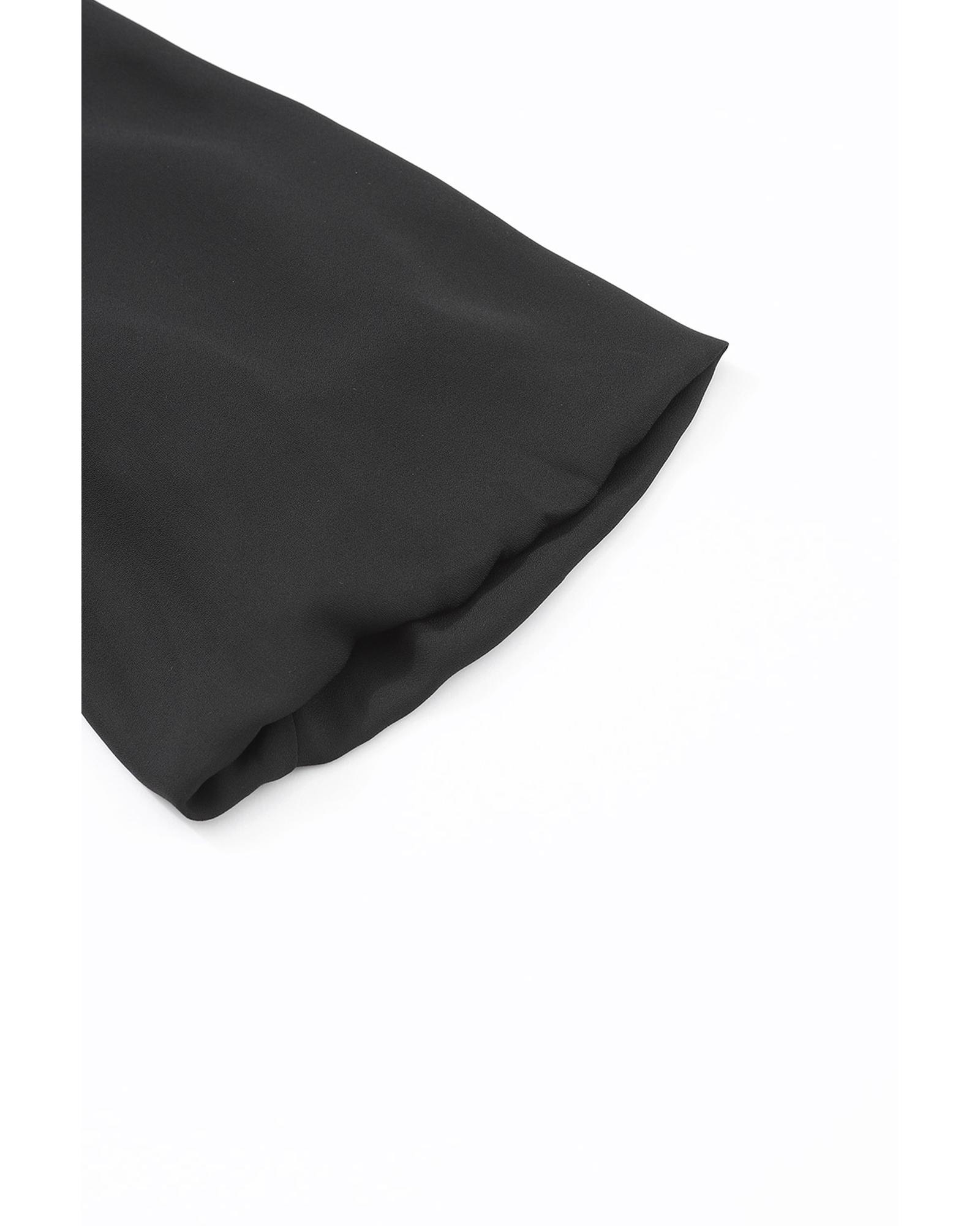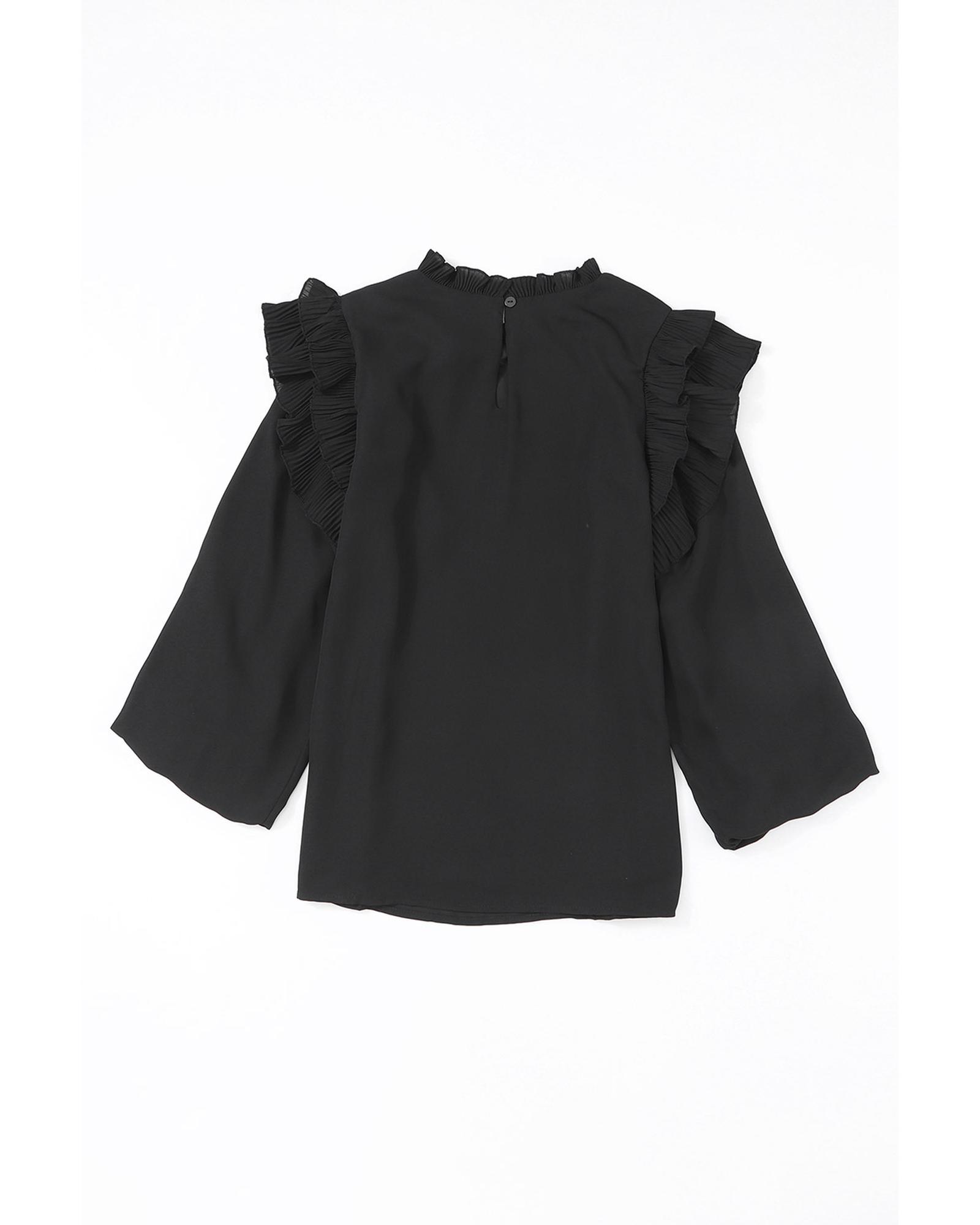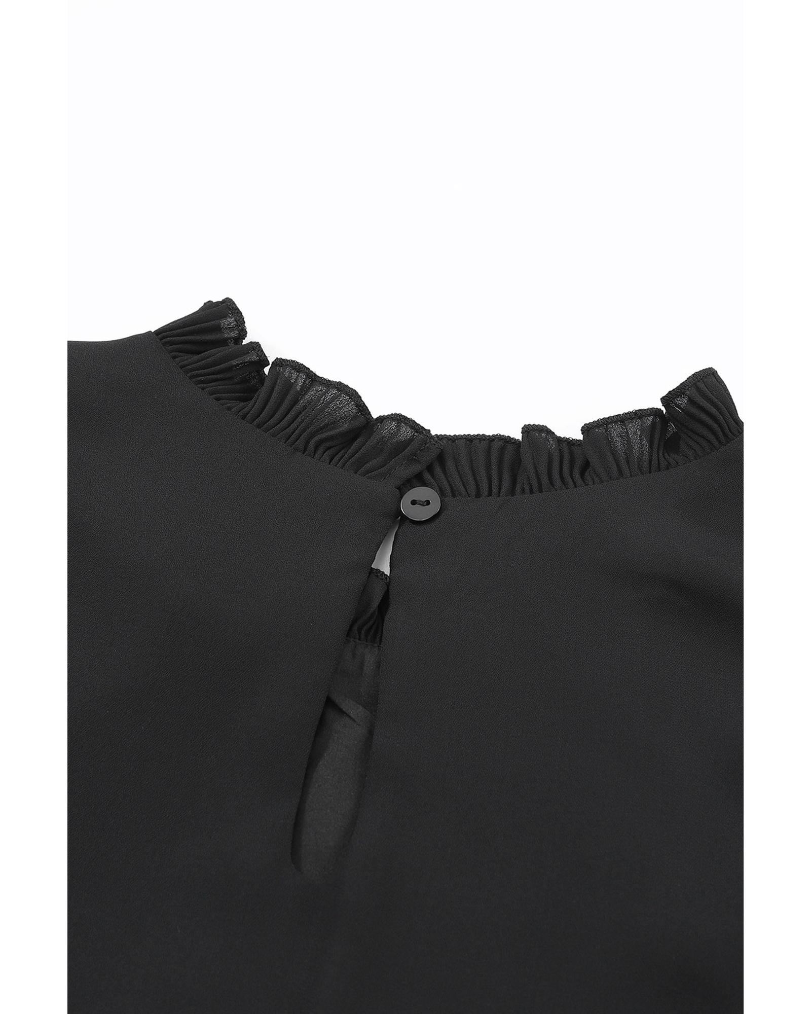 Black Button Keyhole Back Pleated Ruffle Trim Blouse – M