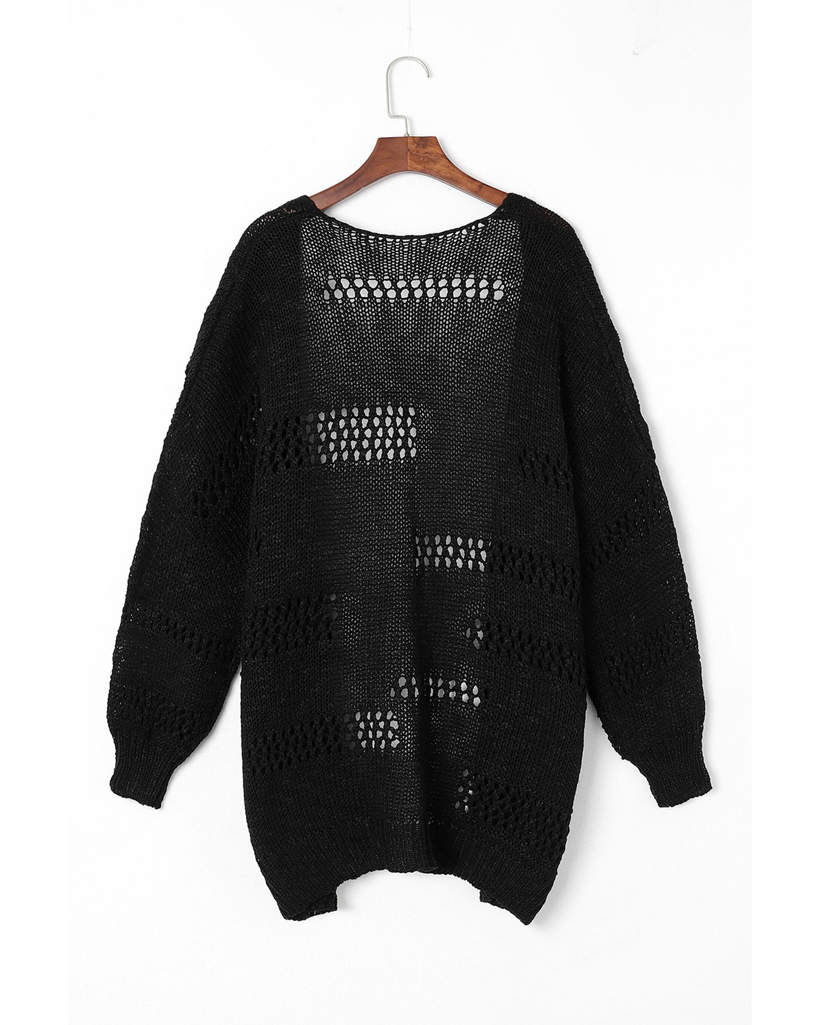 Black Casual Hollowed Knit Dolman Sleeve Cardigan – M