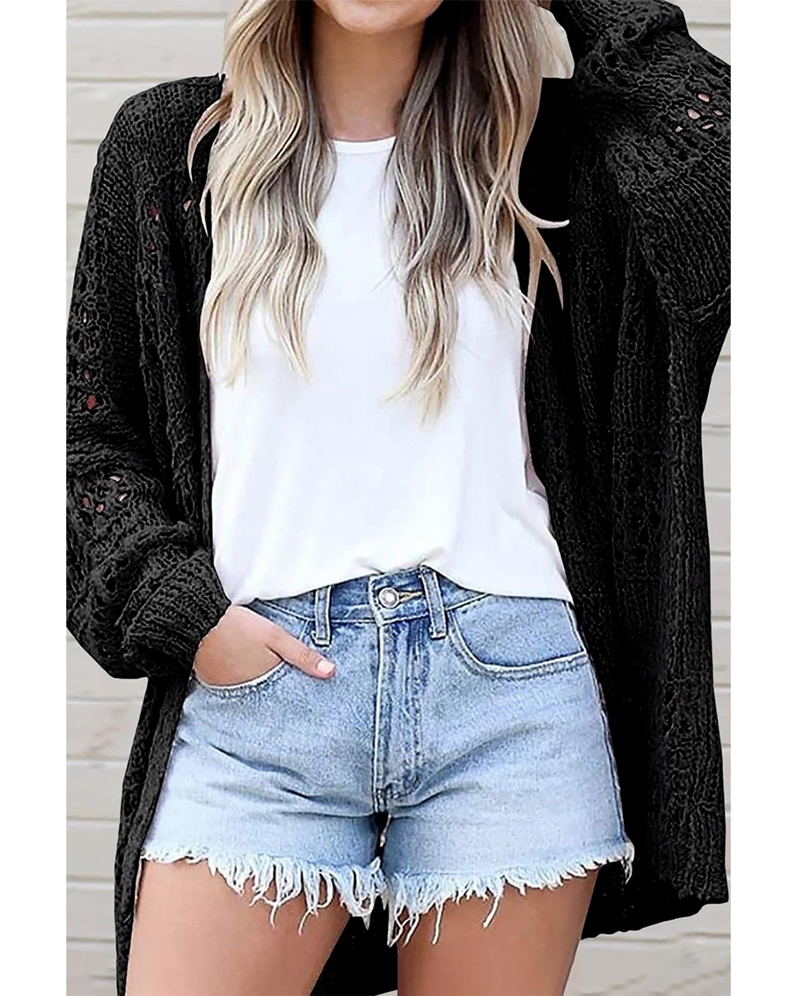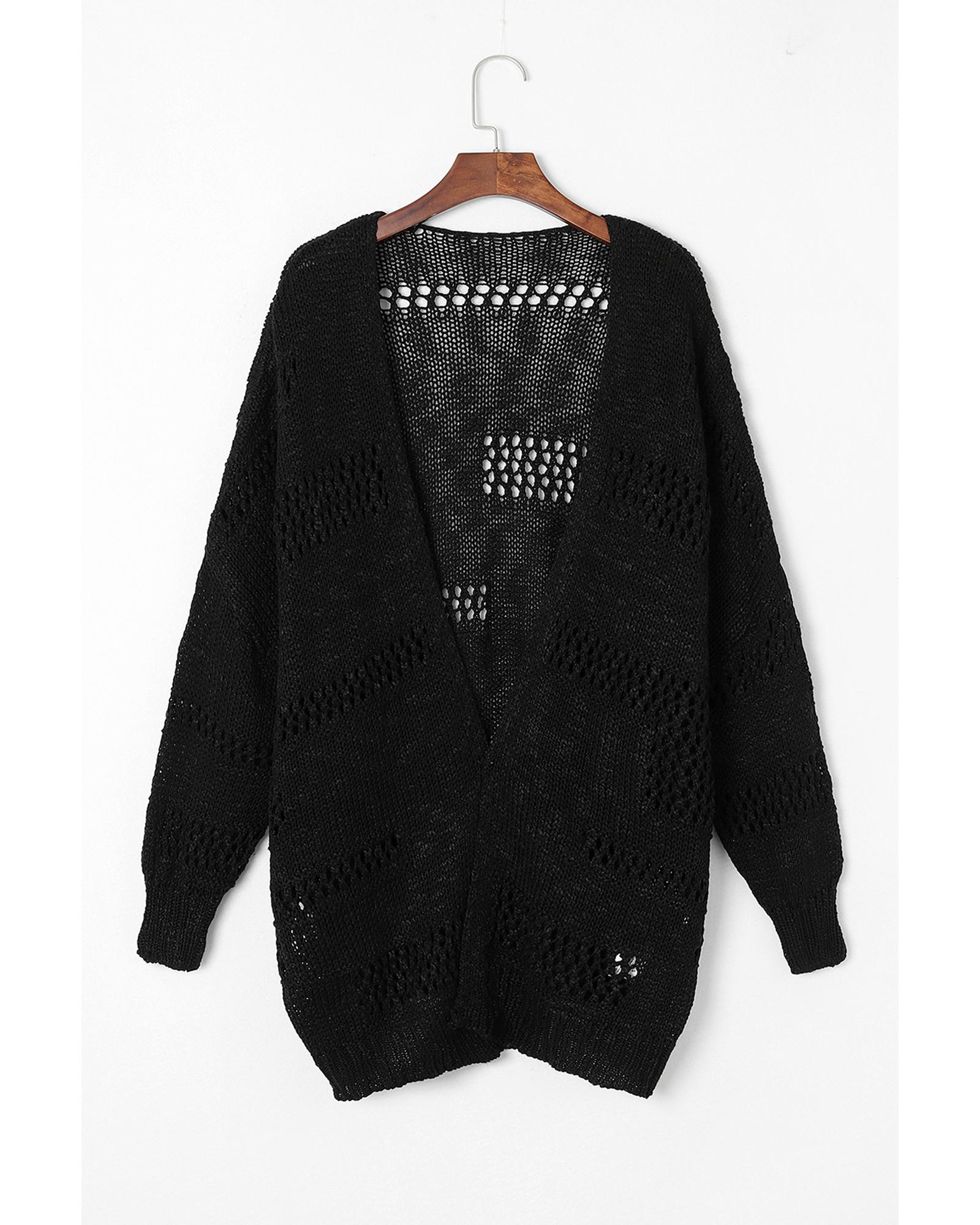 Black Casual Hollowed Knit Dolman Sleeve Cardigan – S