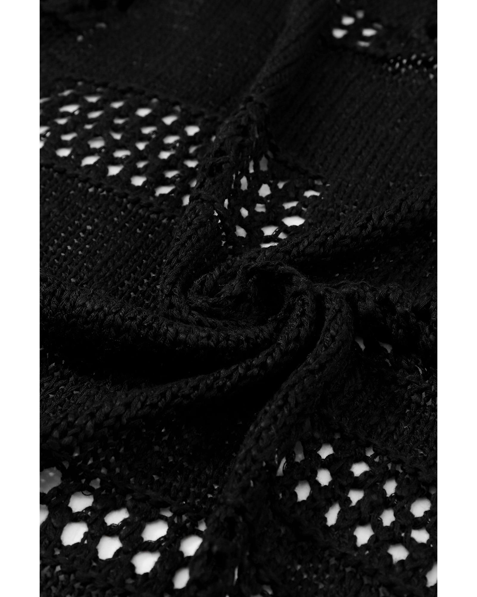 Black Casual Hollowed Knit Dolman Sleeve Cardigan – XL