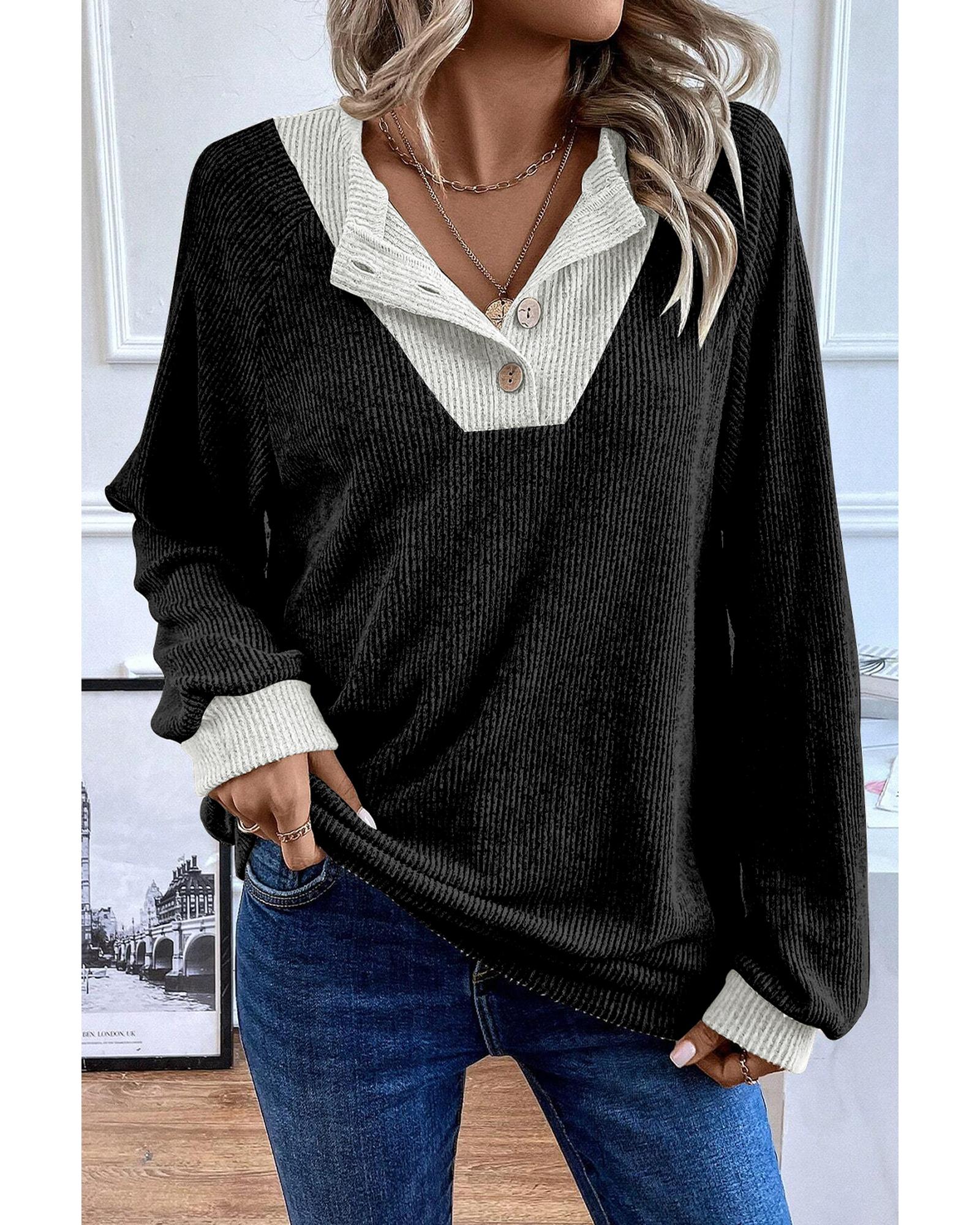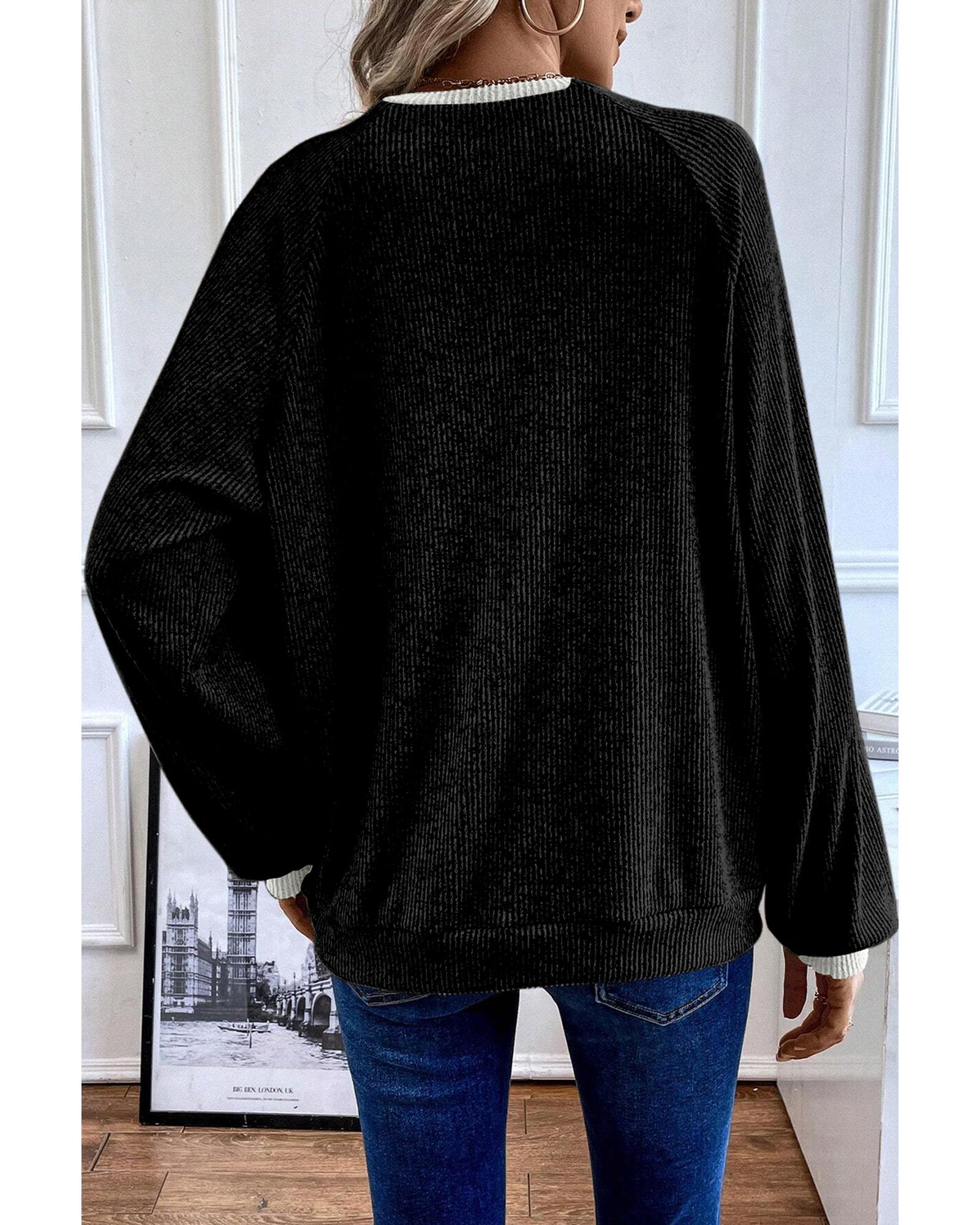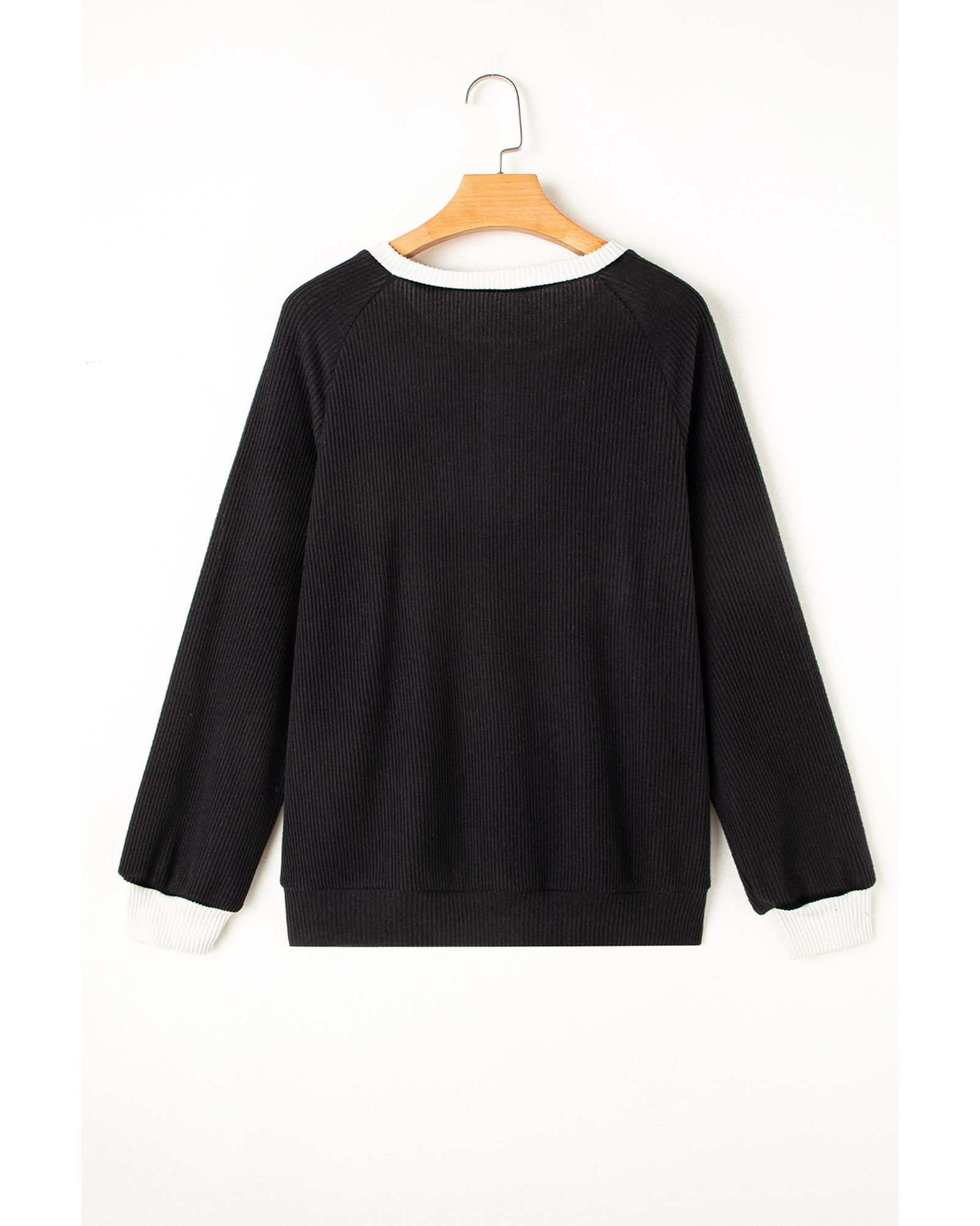 This stylish long sleeve top features a black color contrast design and a ribbed texture, making it a perfect addition to your casual wardrobe. With a loose fit, it offers comfort and versatility for various occasions.