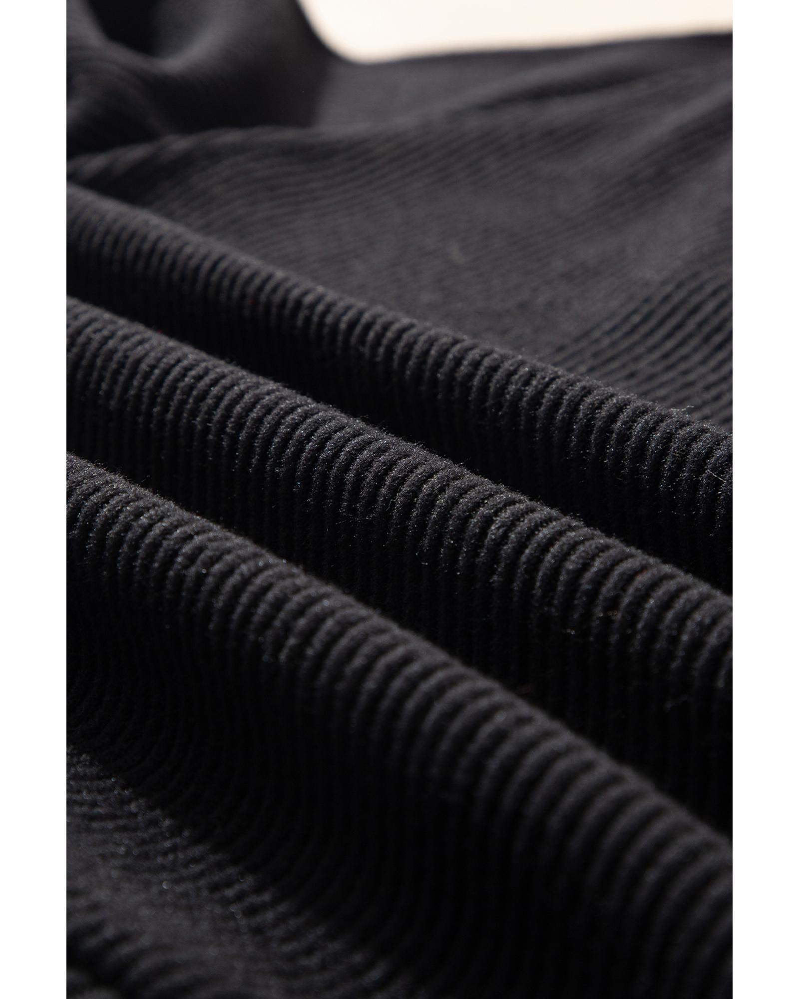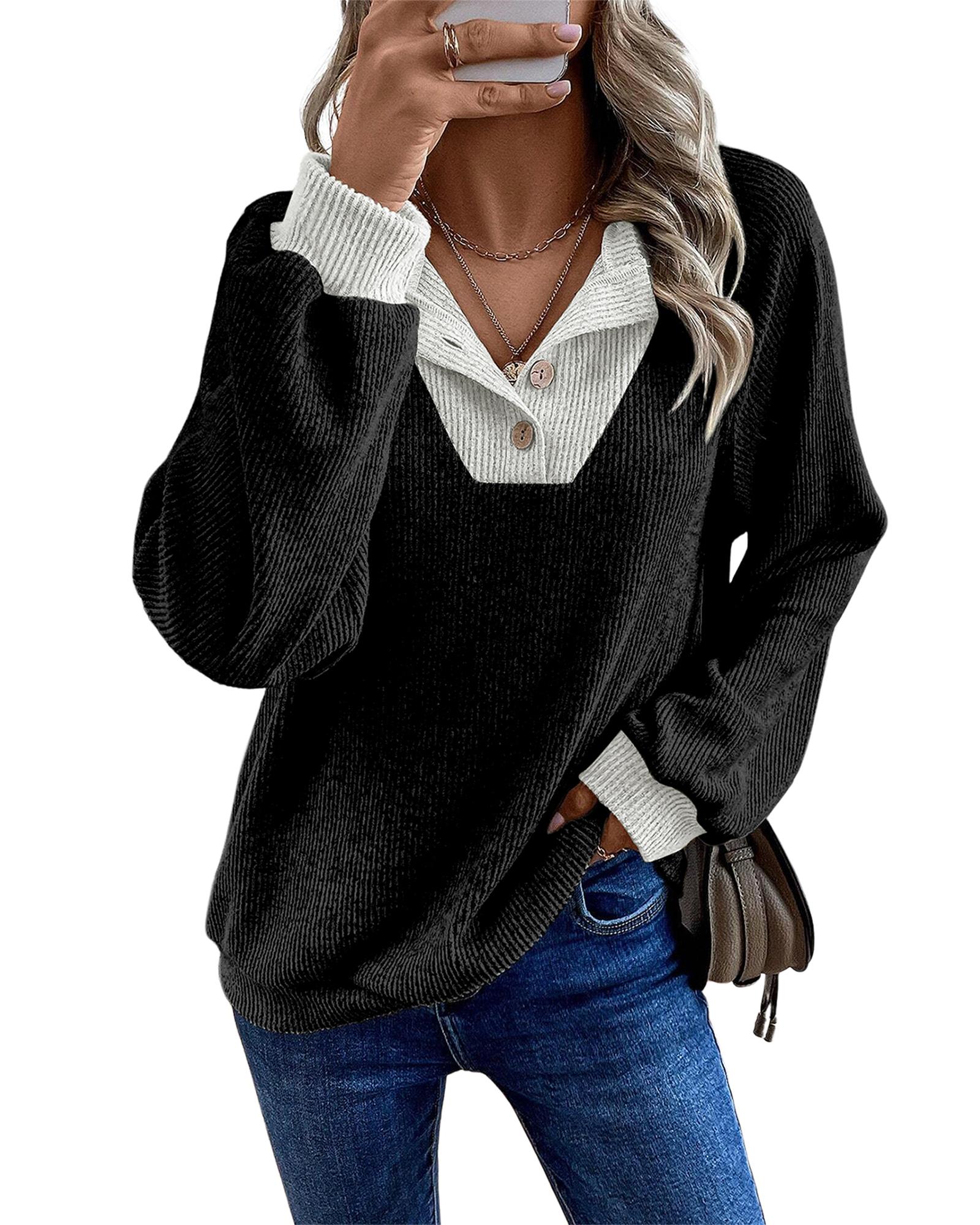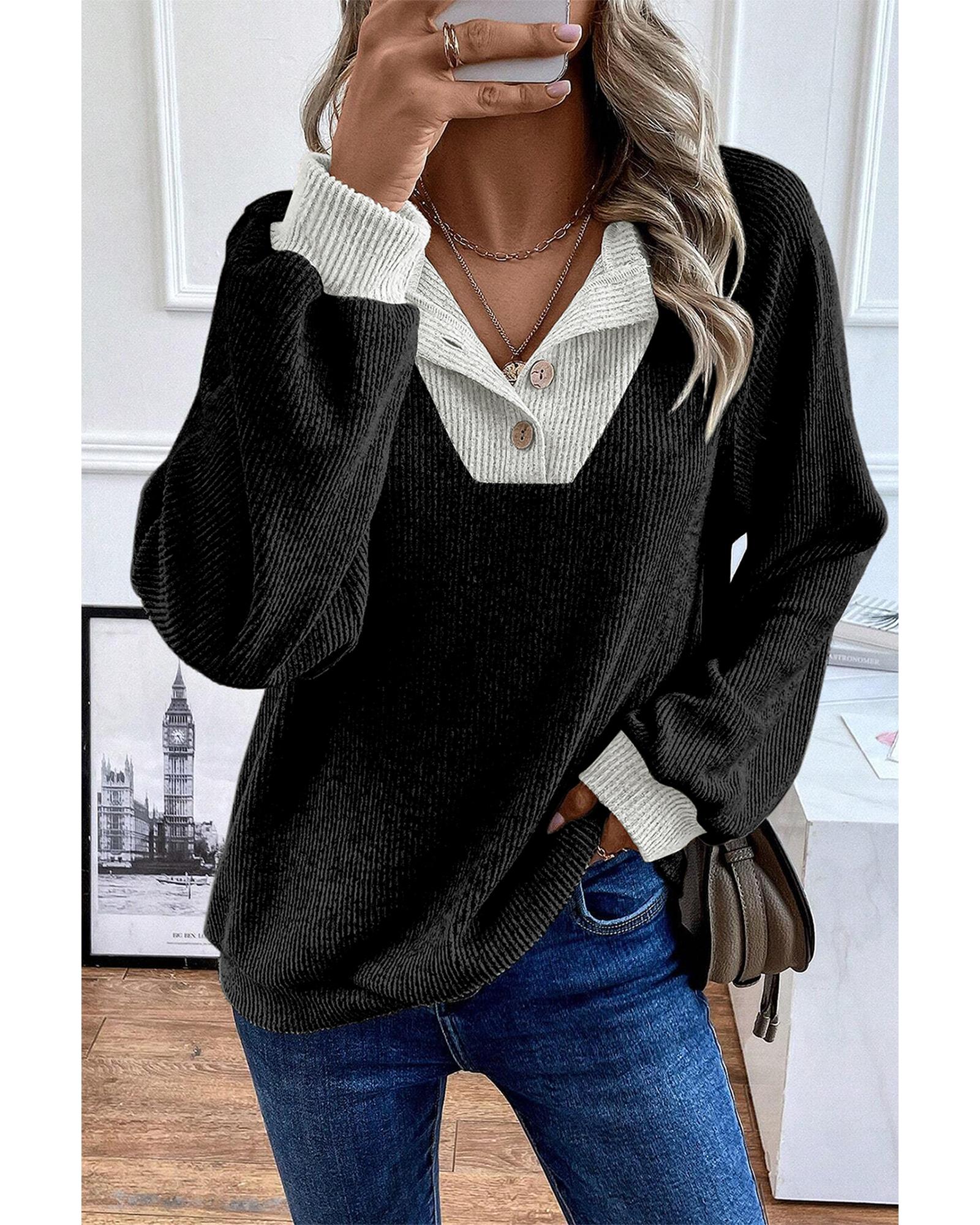 This stylish long sleeve top features a black color contrast design and a ribbed texture, making it a perfect addition to your casual wardrobe. With a loose fit, it offers comfort and versatility for various occasions.