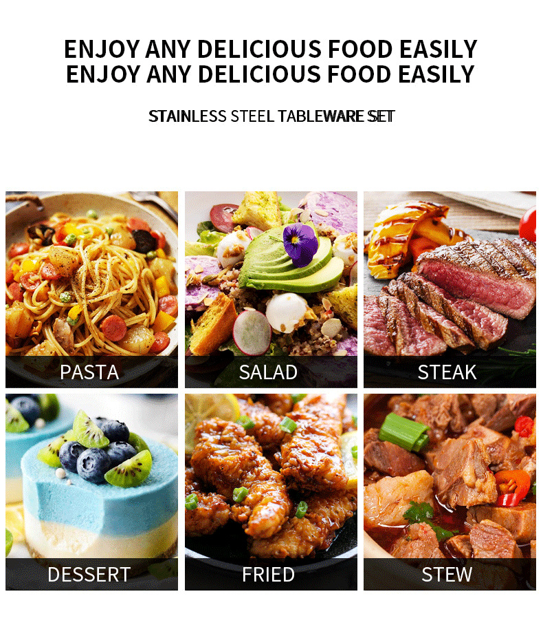- Set includes: 6 knives, 6 forks, 6 tablespoons, 6 teaspoons