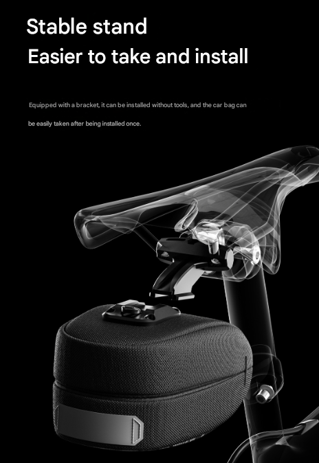 Black Compact Bike Saddle Bag – Quick-Release Water-Resistant Tail Pouch with Reflective Accents
