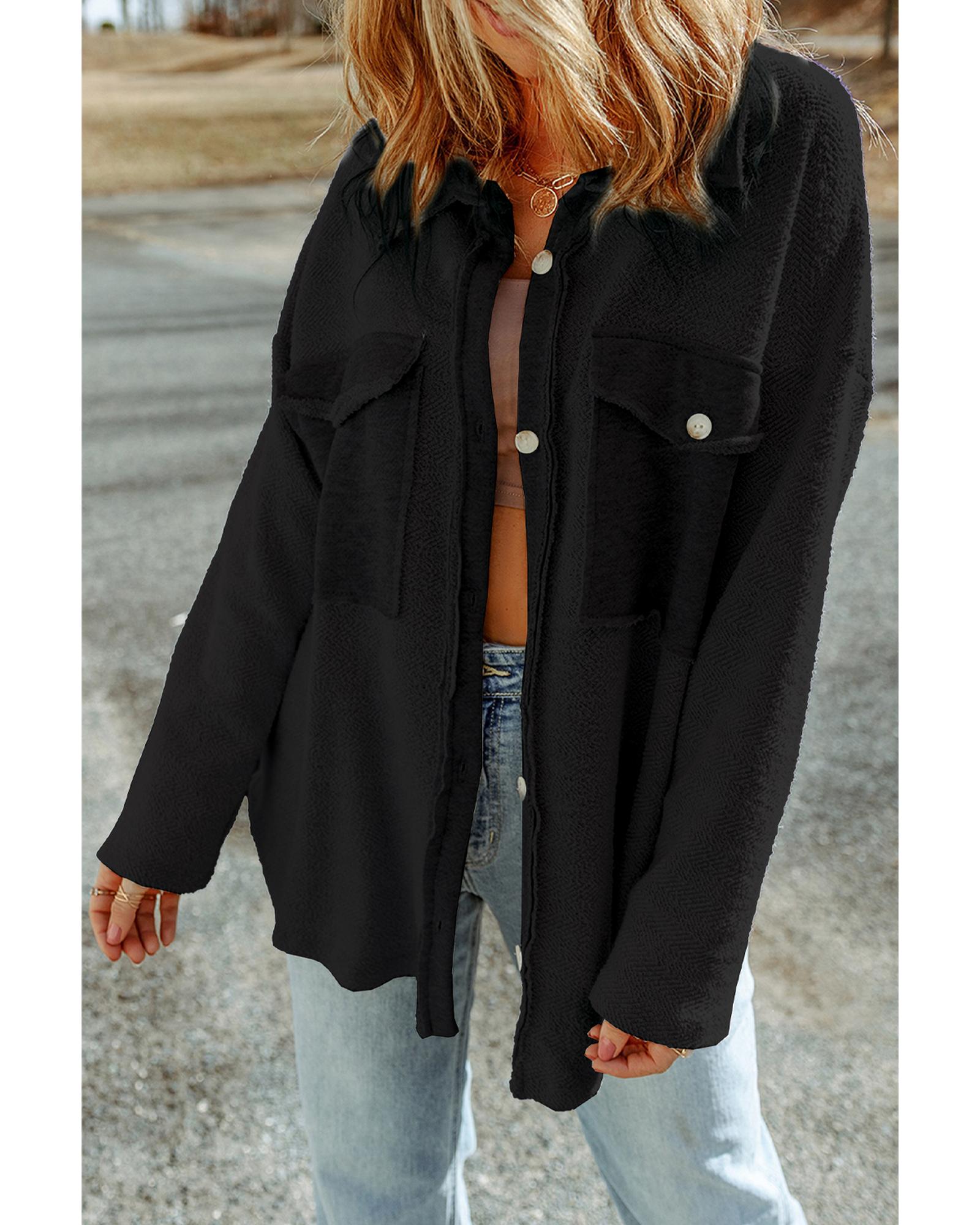 Black Contrast Flap Pockets Relaxed Shacket - S Original price was: $68.99.Current price is: $36.99.