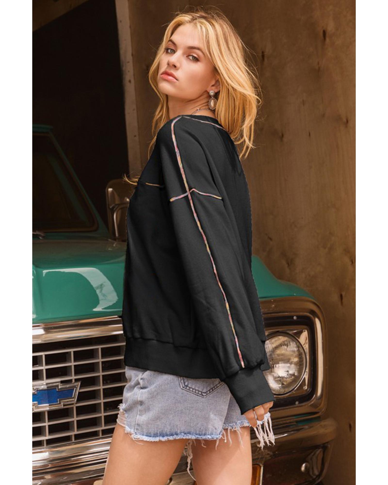 Black Contrast Rainbow Trim Drop Shoulder Pullover Sweatshirt – 2XL