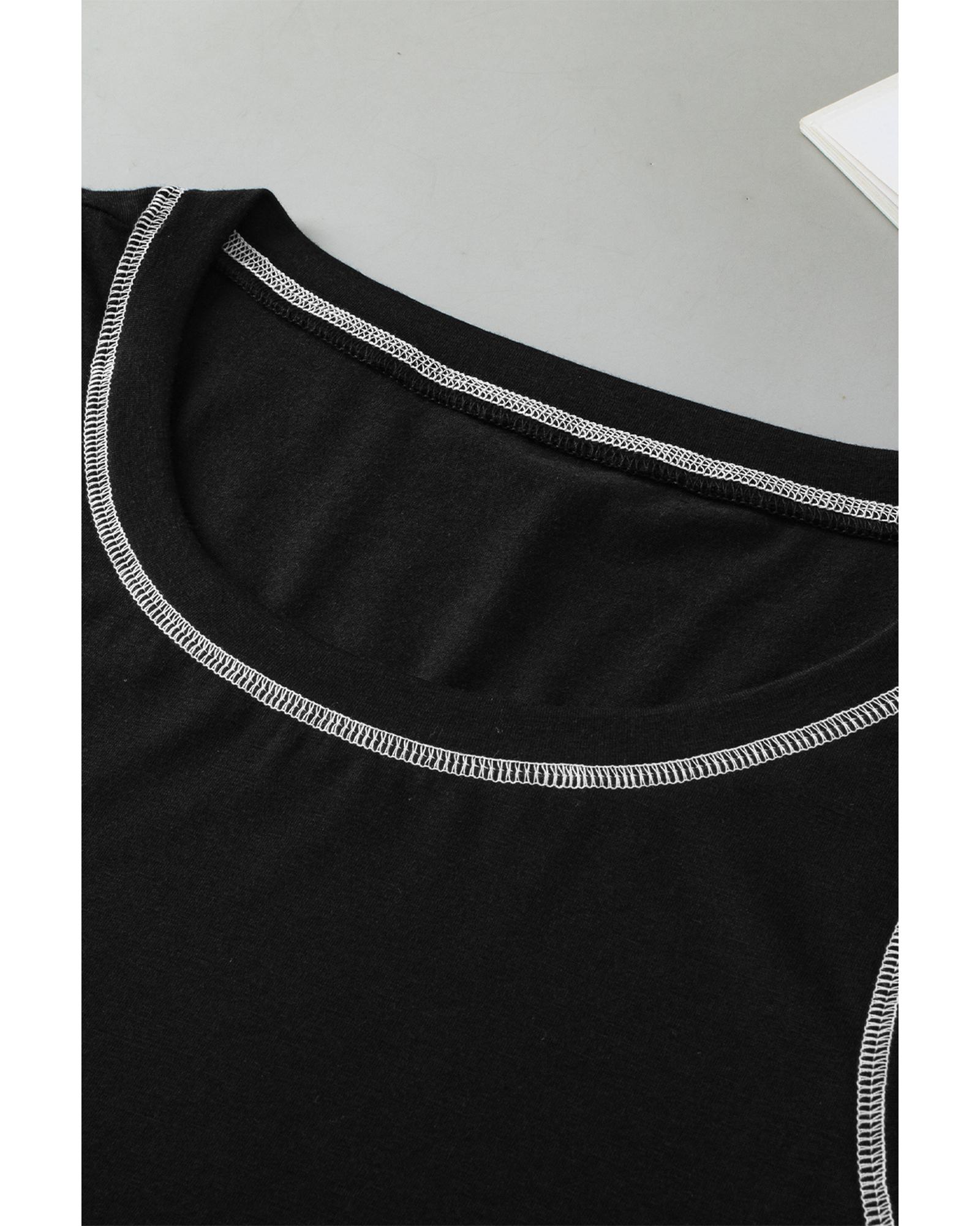 This sleeveless top features a stylish black contrast stitch design and a comfortable crew neck. Its loose fit silhouette makes it suitable for various body shapes, offering both fashion and comfort. Crafted from high-quality materials, it is durable and easy to pair with casual outfits.