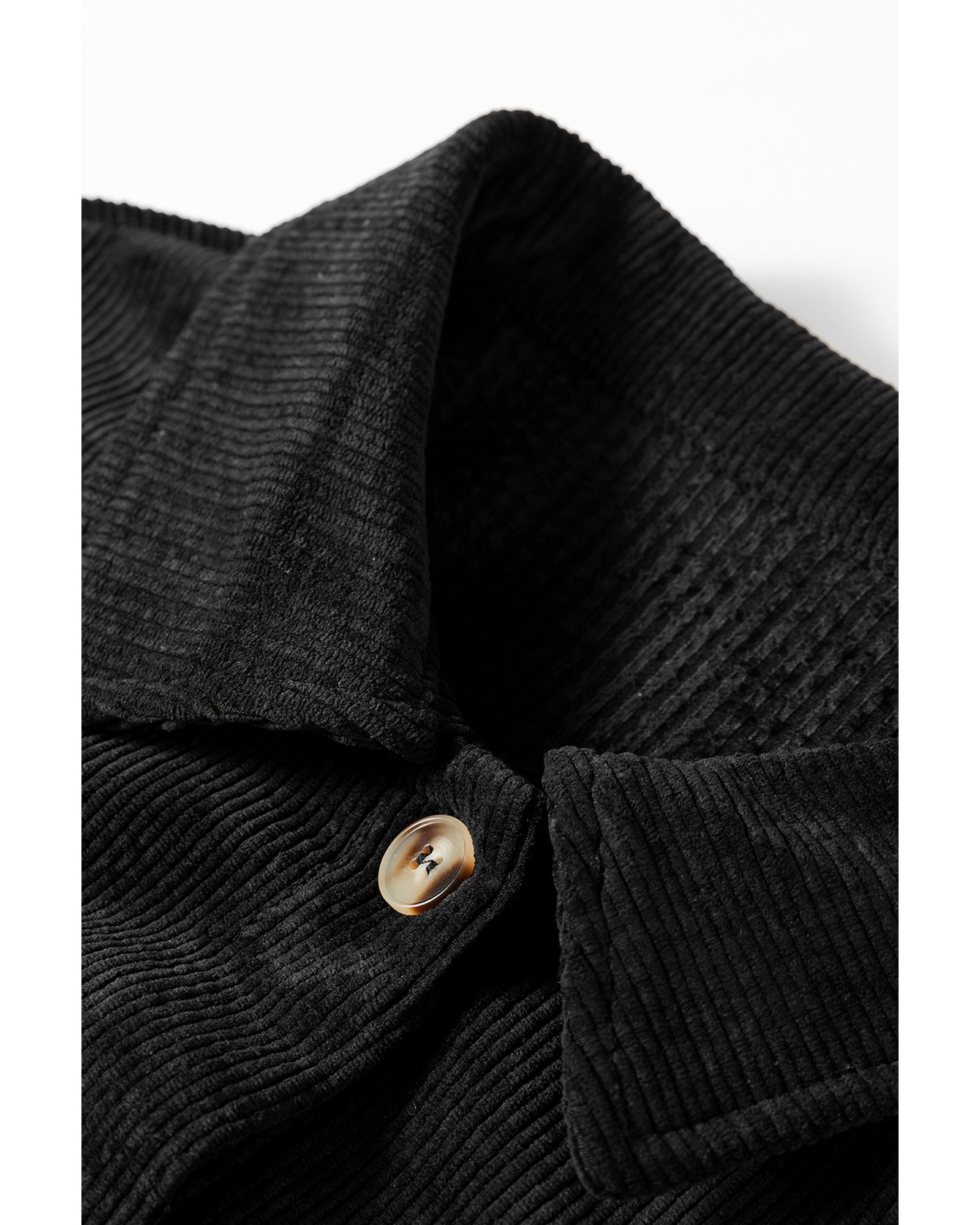 Black Corduroy Flap Pocket Button Up Shacket – S