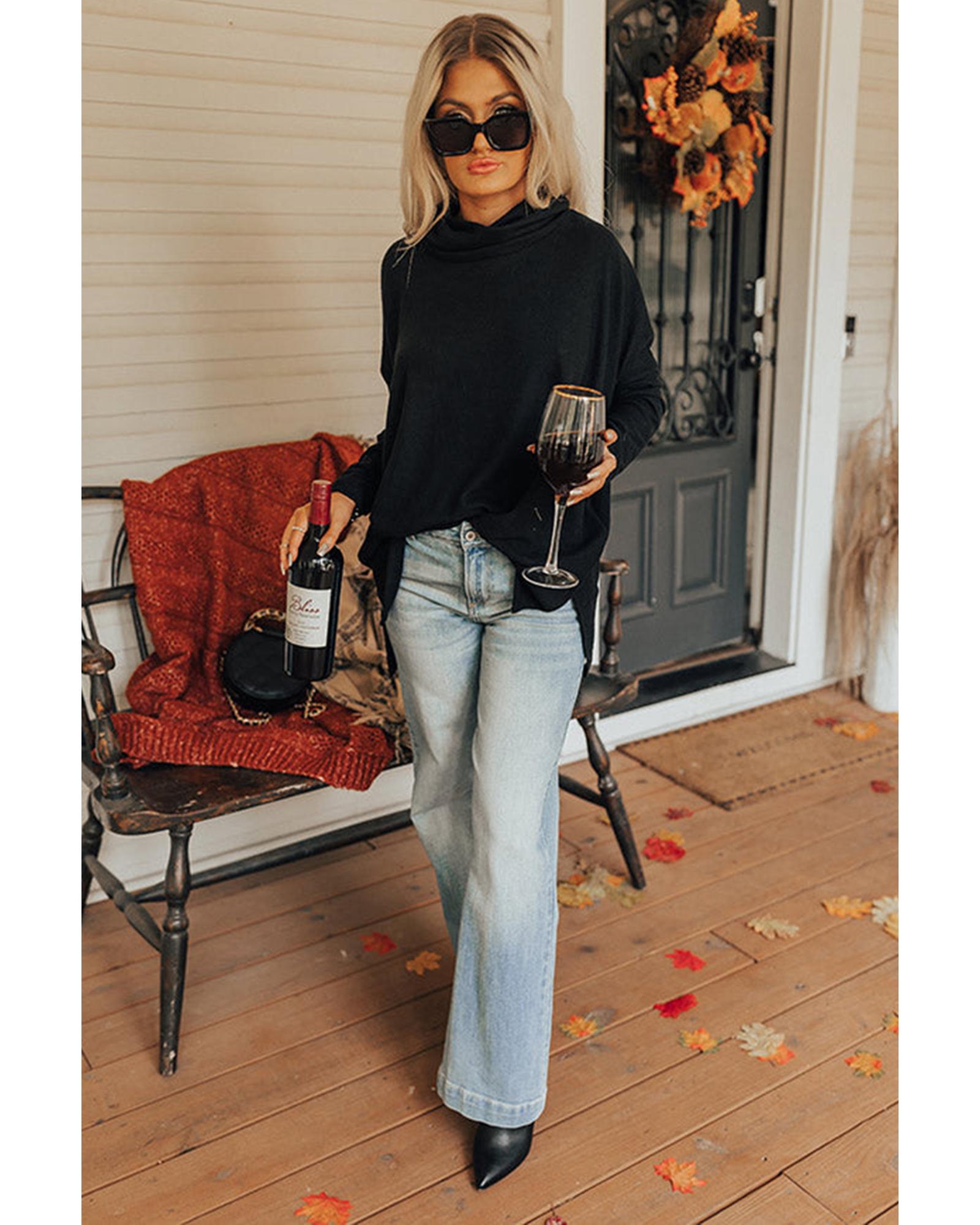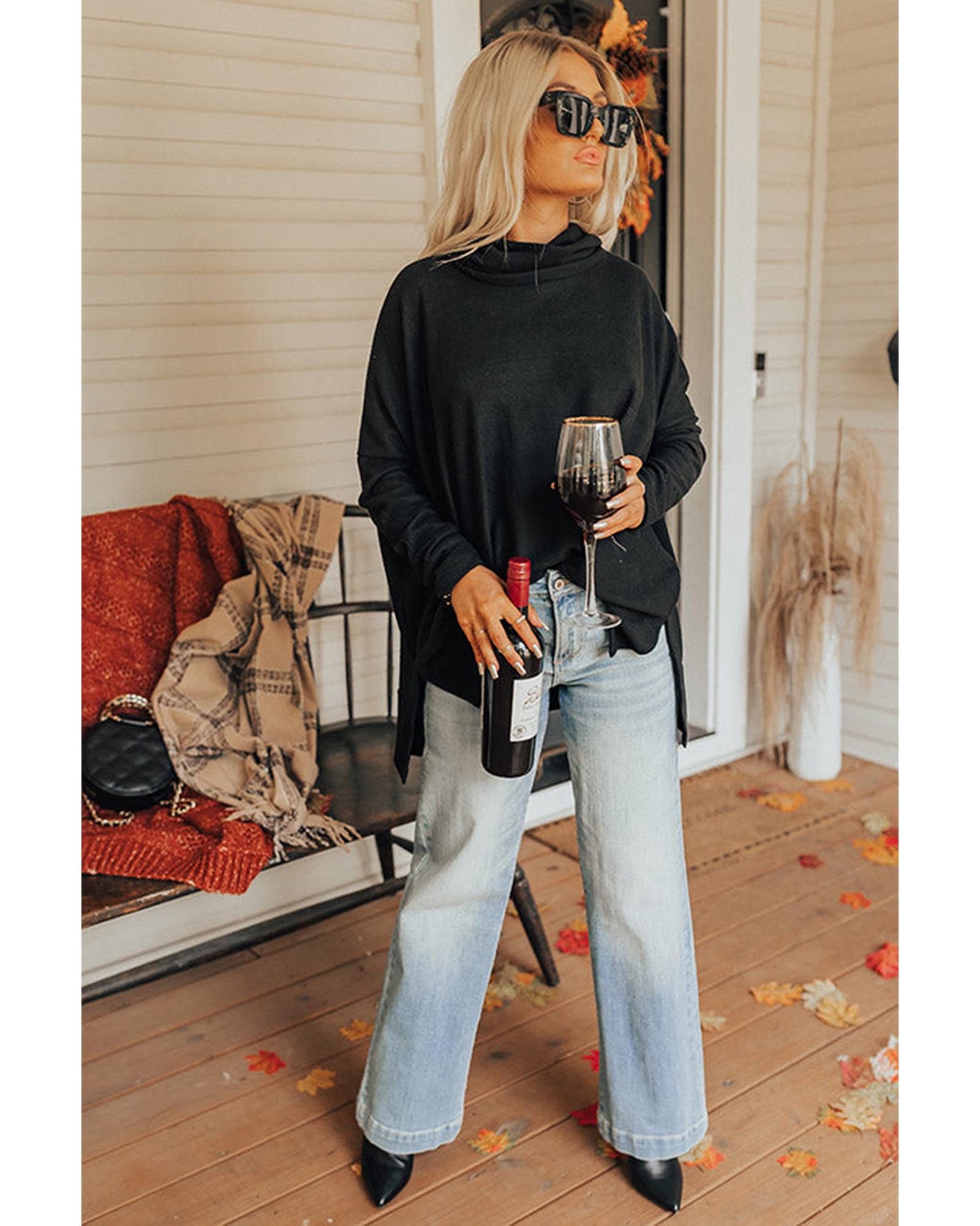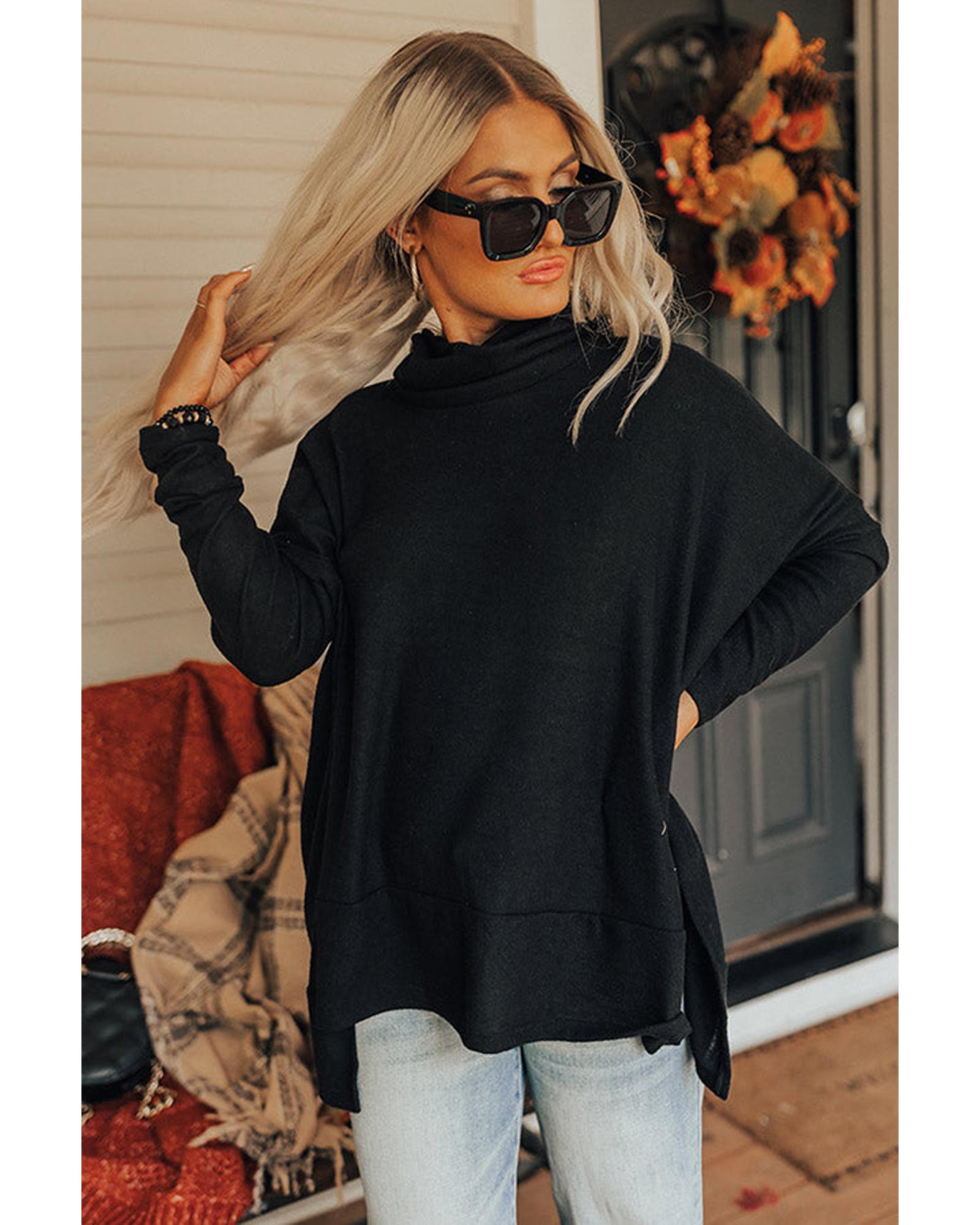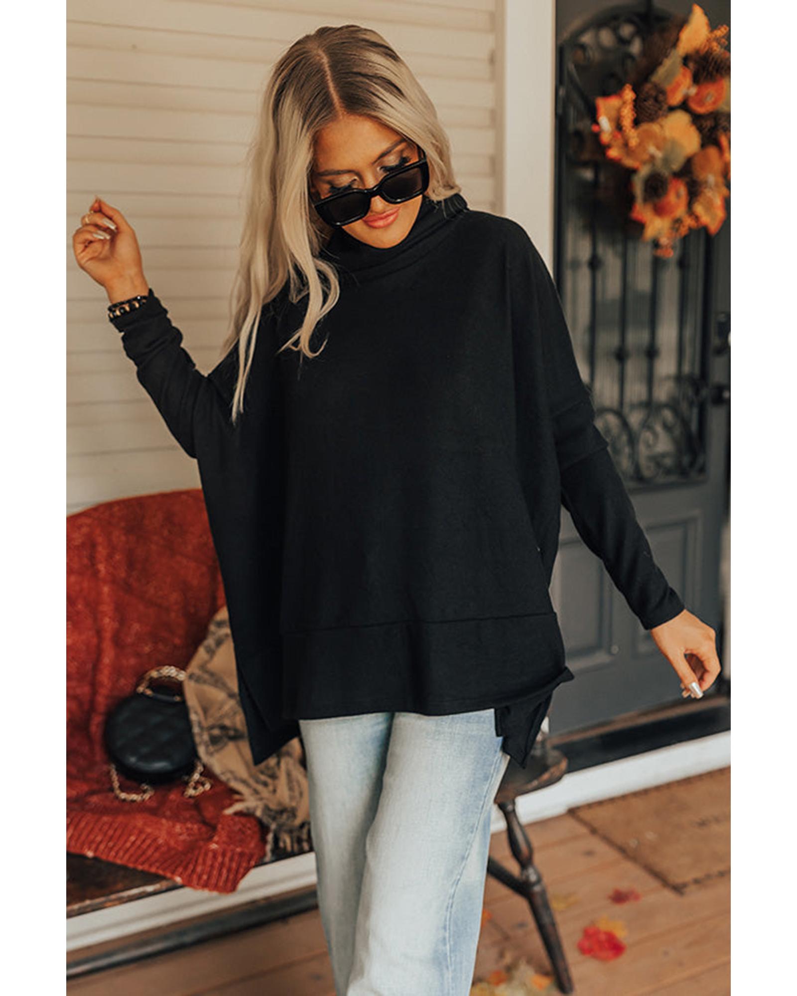 This black cowl neck shift tunic top offers a trendy and comfortable fit with a relaxed silhouette. Designed with a lightweight, soft fabric, it features a stylish cowl neckline, long sleeves, and a thigh-length hem with accent side slits. Available in multiple sizes, it is suitable for various body types and provides a fashionable yet casual look.