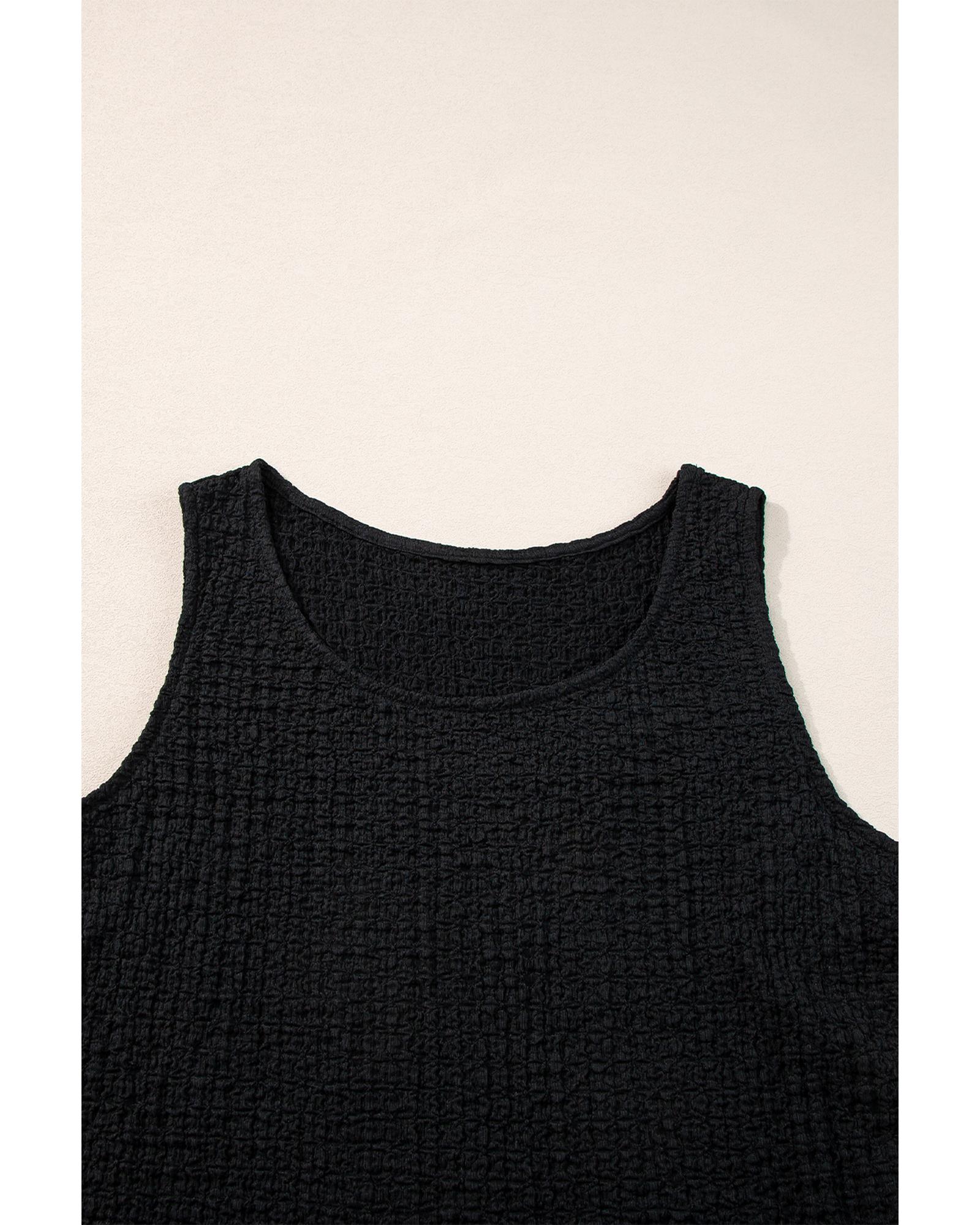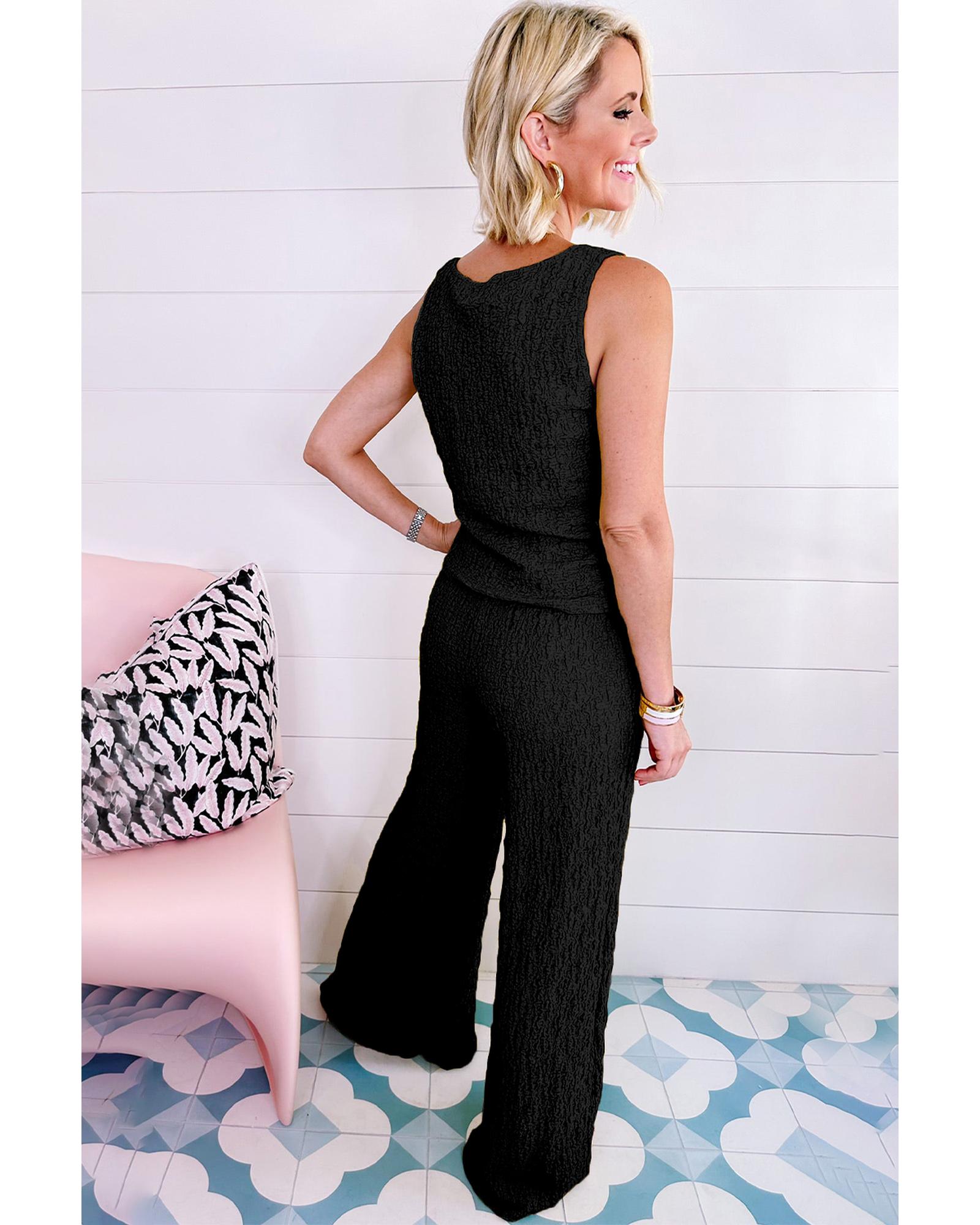 Black Crinkled U Neck Tank Top and Wide Leg Pants Set – L