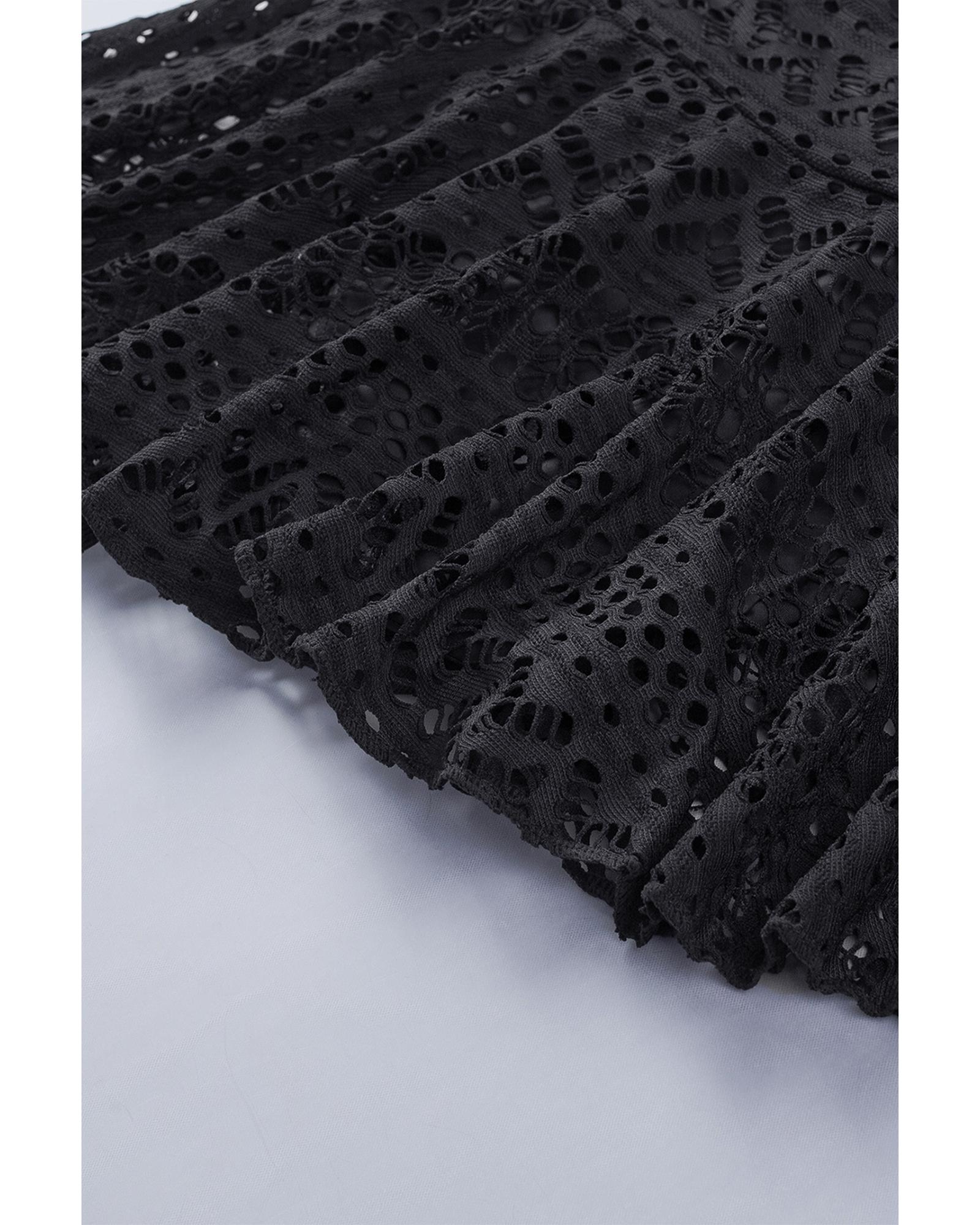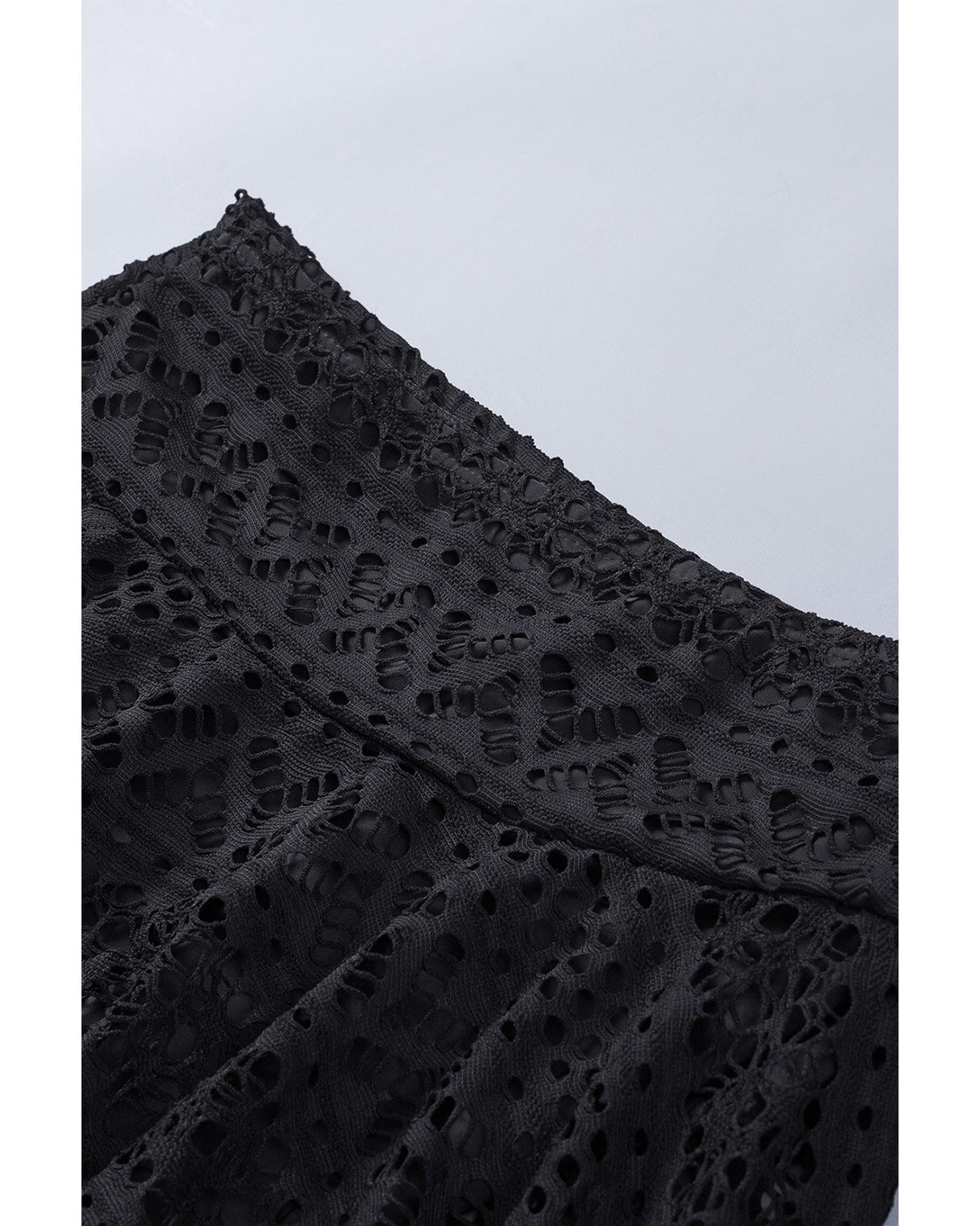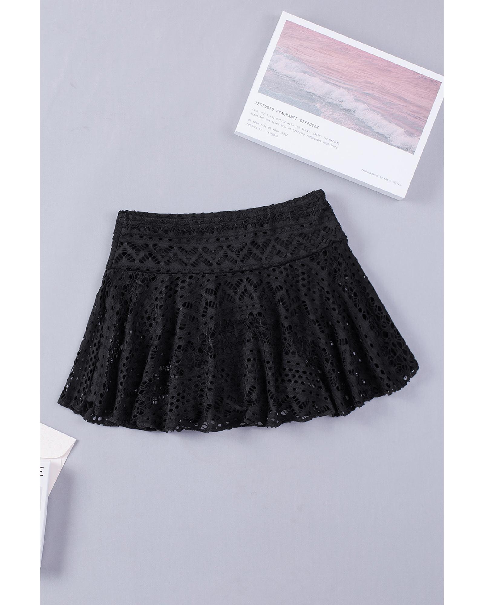 This black crochet lace skirted bikini bottom offers a stylish and trendy look, combining a fitted design with a comfortable fit. It features a crochet lace overlay with an inserted swim brief, making it a versatile choice for beachwear and summer vacations. The bikini bottom is easy to pair with any tankini top, providing a fashionable and functional swimwear option for women.