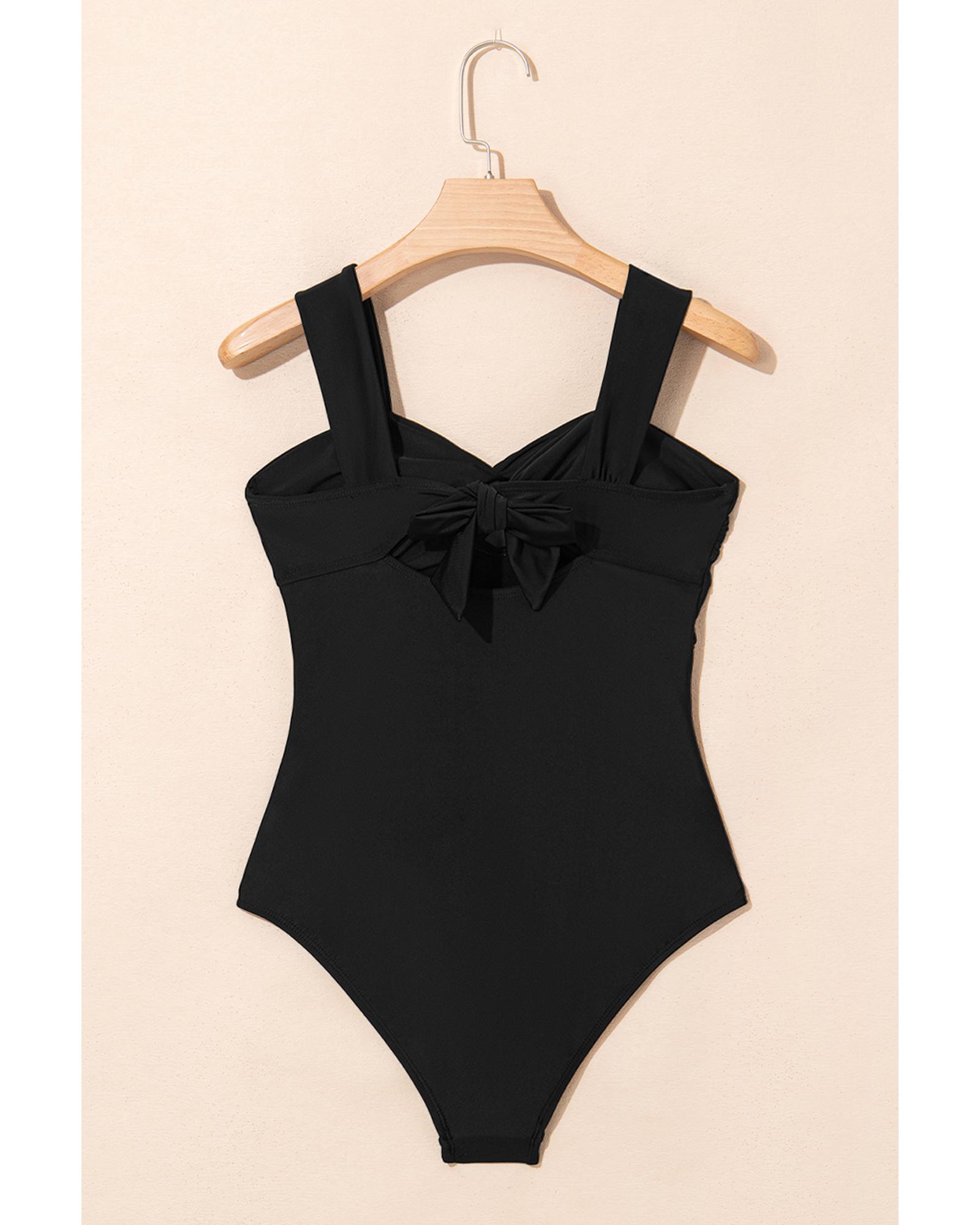 Black Cut out Twist Bowknot Backless One Piece Swimsuit – XL