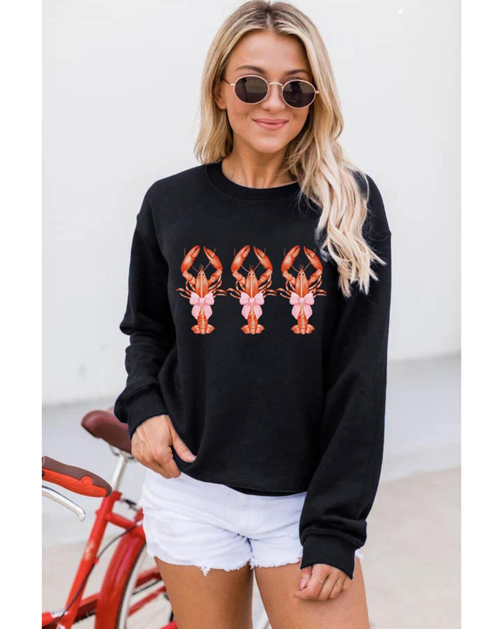 Black Cute Bow Crawfish Printed Drop Shoulder Sweatshirt – XL