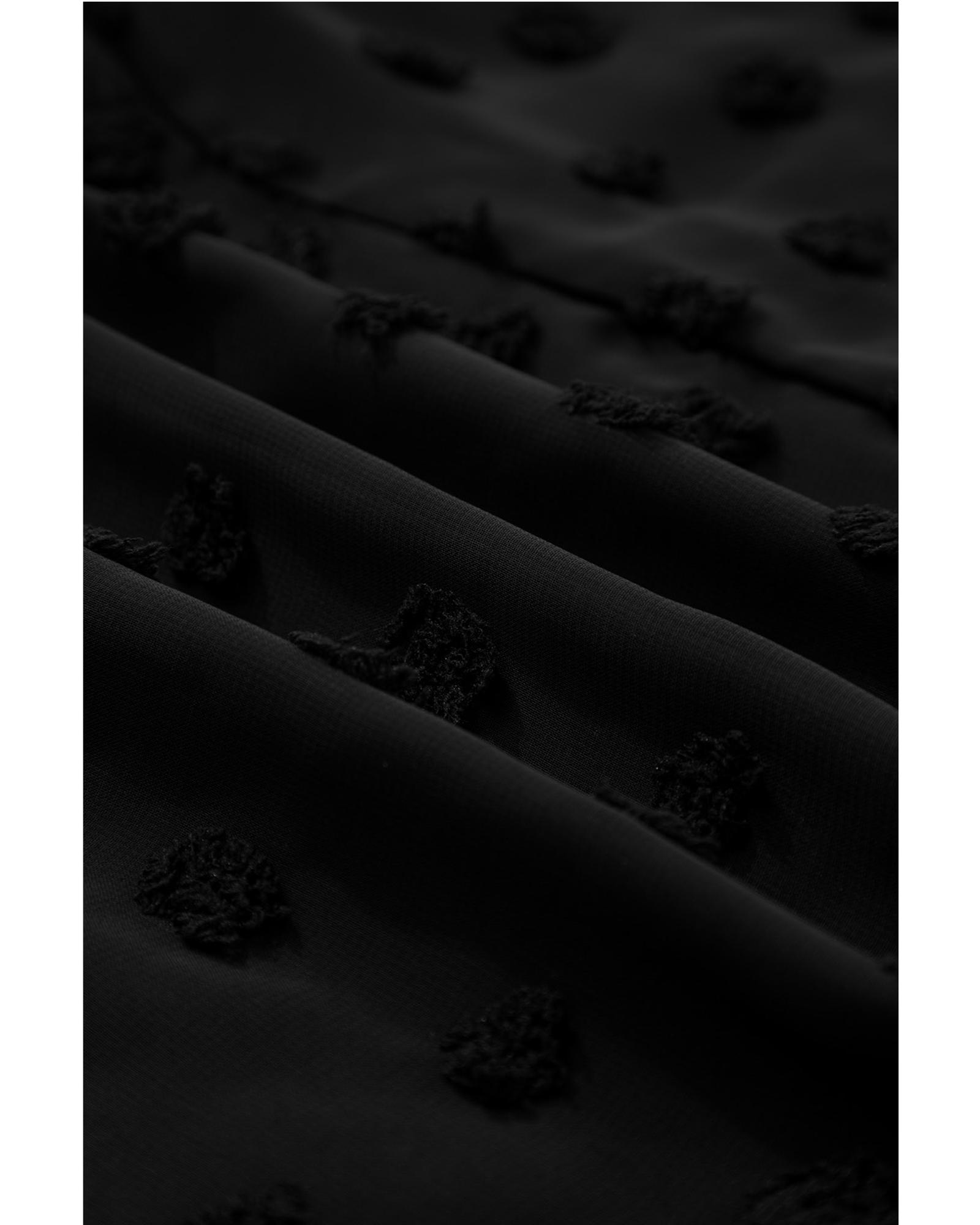 Black Dotty Textured Notched Neck Plus Ruffled Dress – 2X