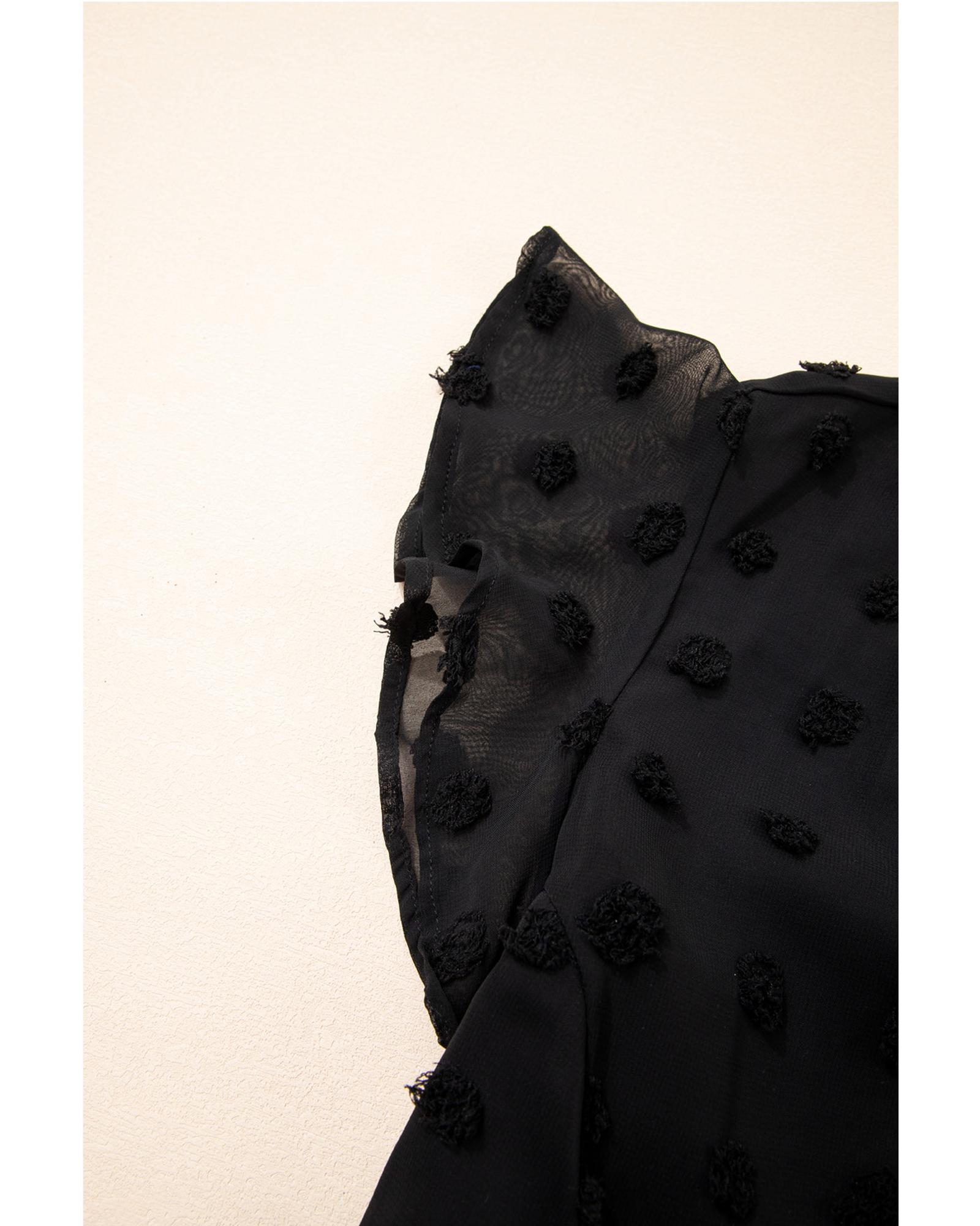 Black Dotty Textured Notched Neck Plus Ruffled Dress – 3X