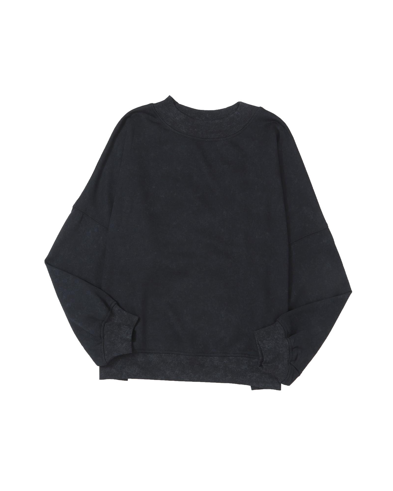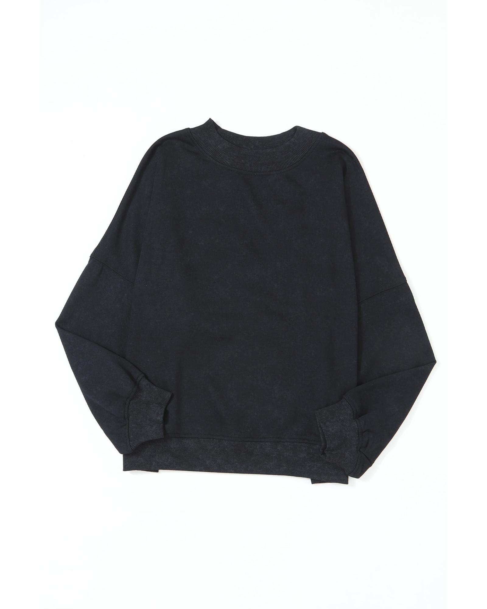 This black drop shoulder crew neck pullover sweatshirt offers a casual and vintage style with a relaxed washed hue silhouette. Its fashionable drop shoulder design makes it a versatile piece suitable for various outfits and occasions.