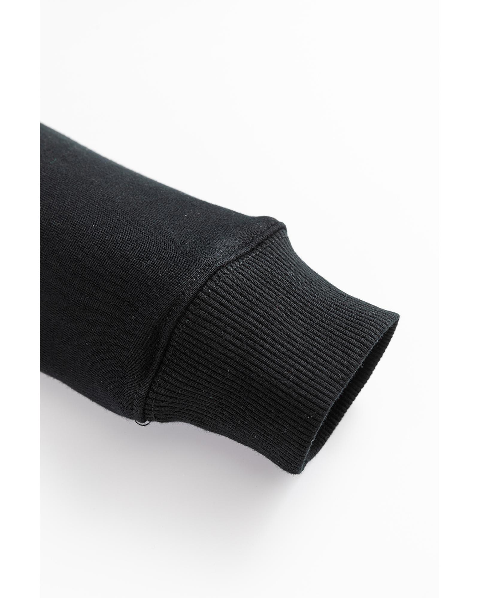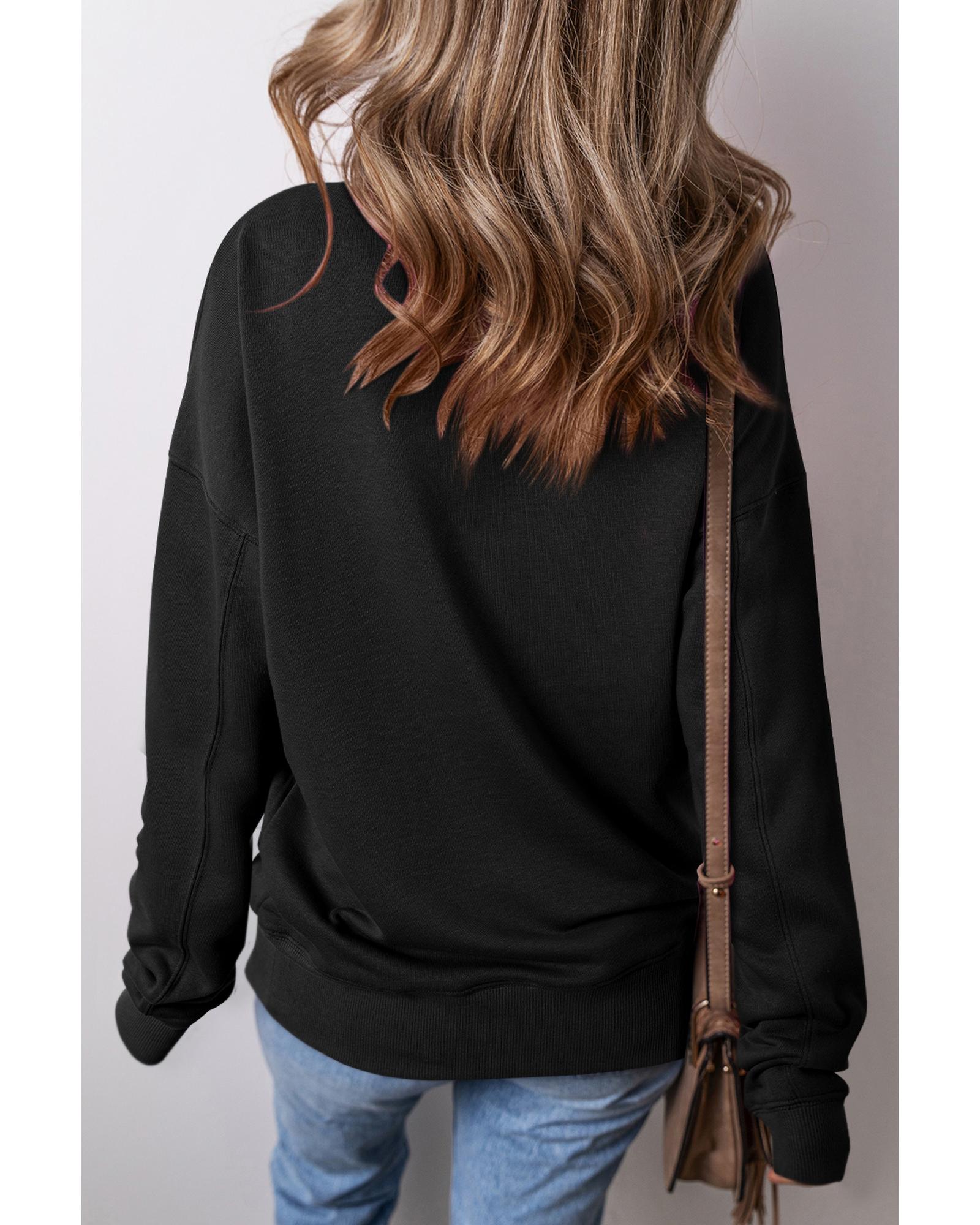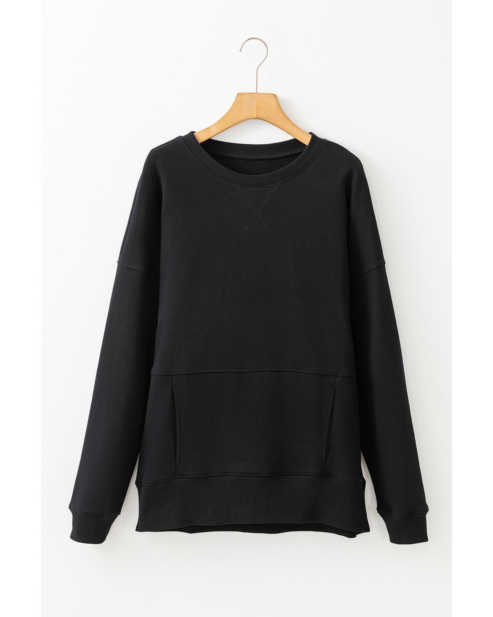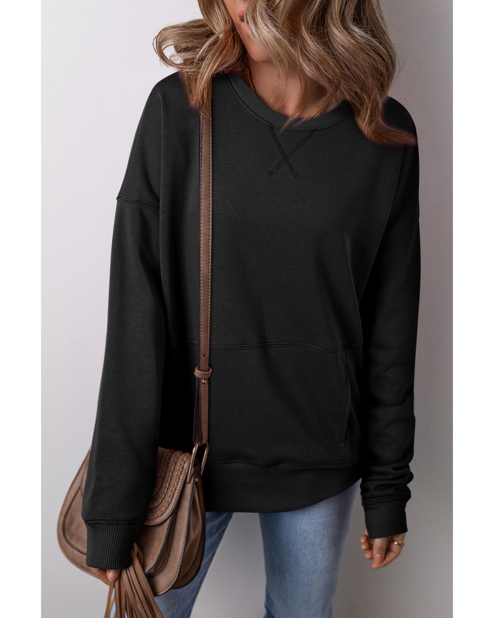 This black drop shoulder sweatshirt features a relaxed fit with a stylish crisscross stitching detail and practical pockets. Designed for everyday wear, it combines comfort and fashion effortlessly.