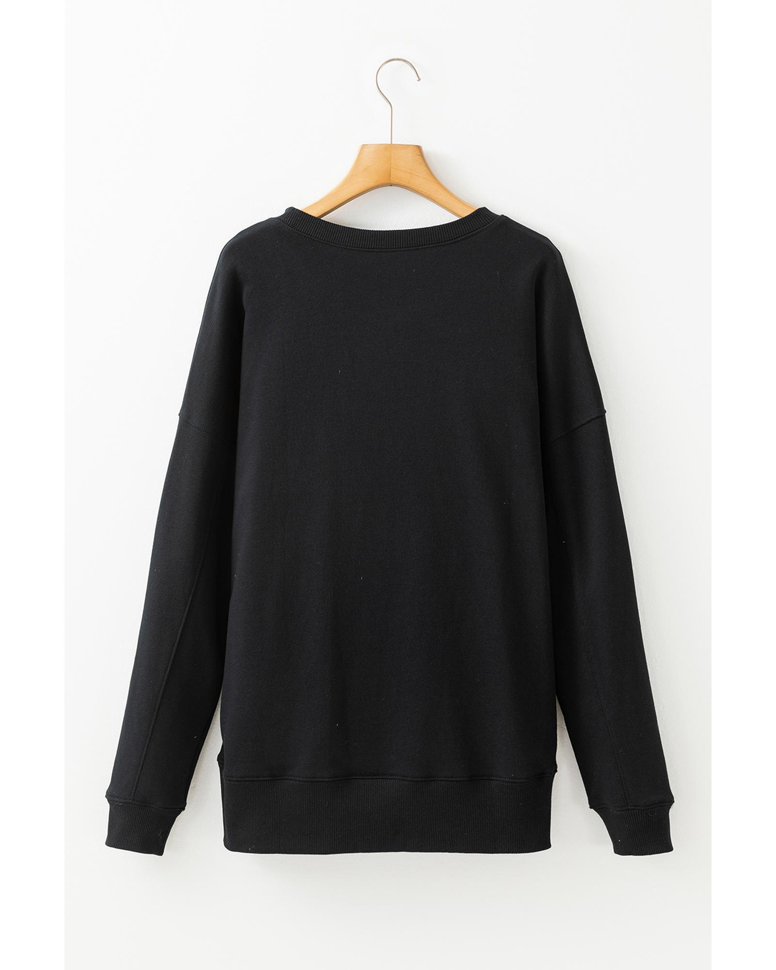 Black Drop Shoulder Crisscross Stitching Pocketed Loose Sweatshirt – XL