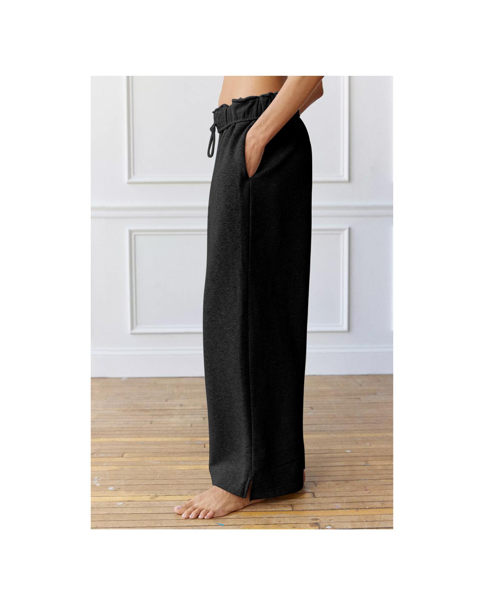 This pair of black elastic high waist drawstring sweatpants combines comfort and style, making it suitable for both lounging and exercising. Designed with a trendy fitted look, these pants feature a straight leg design and an elastic high waist with a drawstring for a customized fit. Practical side pockets add convenience for carrying essentials.