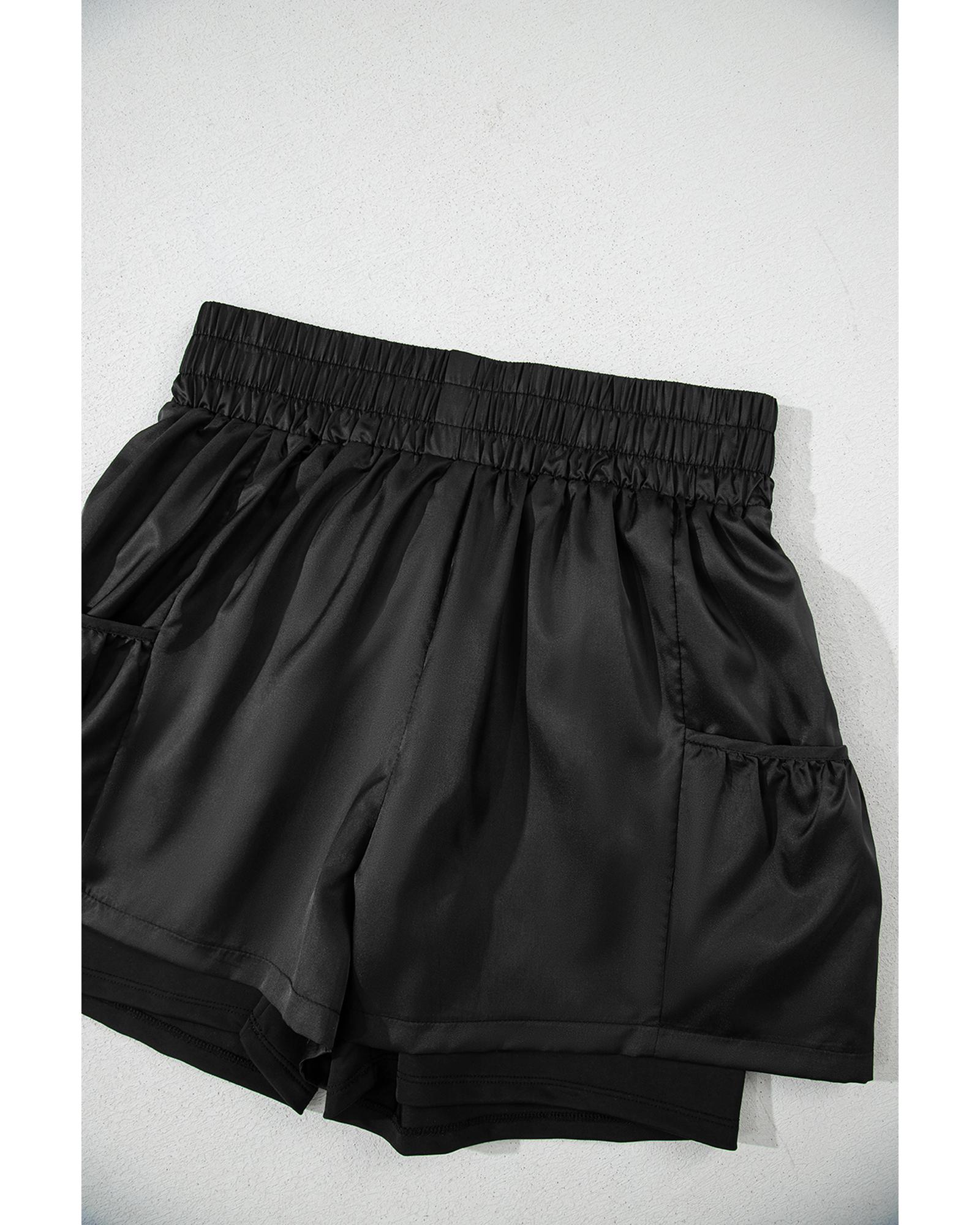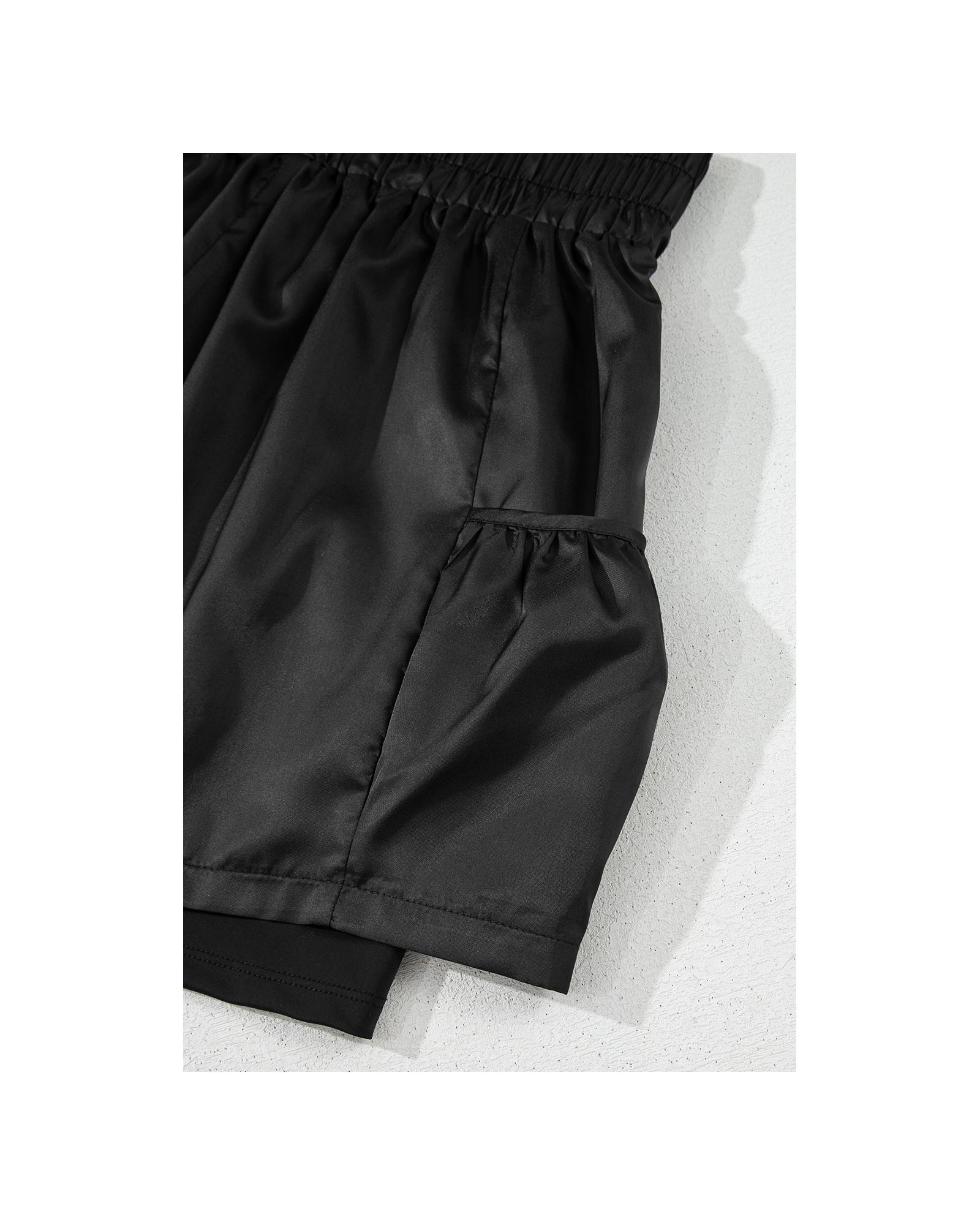 These black elastic high waist casual shorts are designed for comfort and practicality, featuring a versatile solid color and a flattering fit. They are suitable for everyday wear and easy to style with various outfits.
