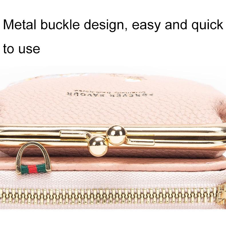 This is a stylish single shoulder phone bag and wallet featuring a black embroidery design. Made from durable PU leather, it offers a large capacity with multiple compartments, making it suitable for daily outings. The bag combines practicality with a neat appearance, incorporating high-quality hardware and a smooth alloy zipper. Its detachable design adds convenience for versatile use.