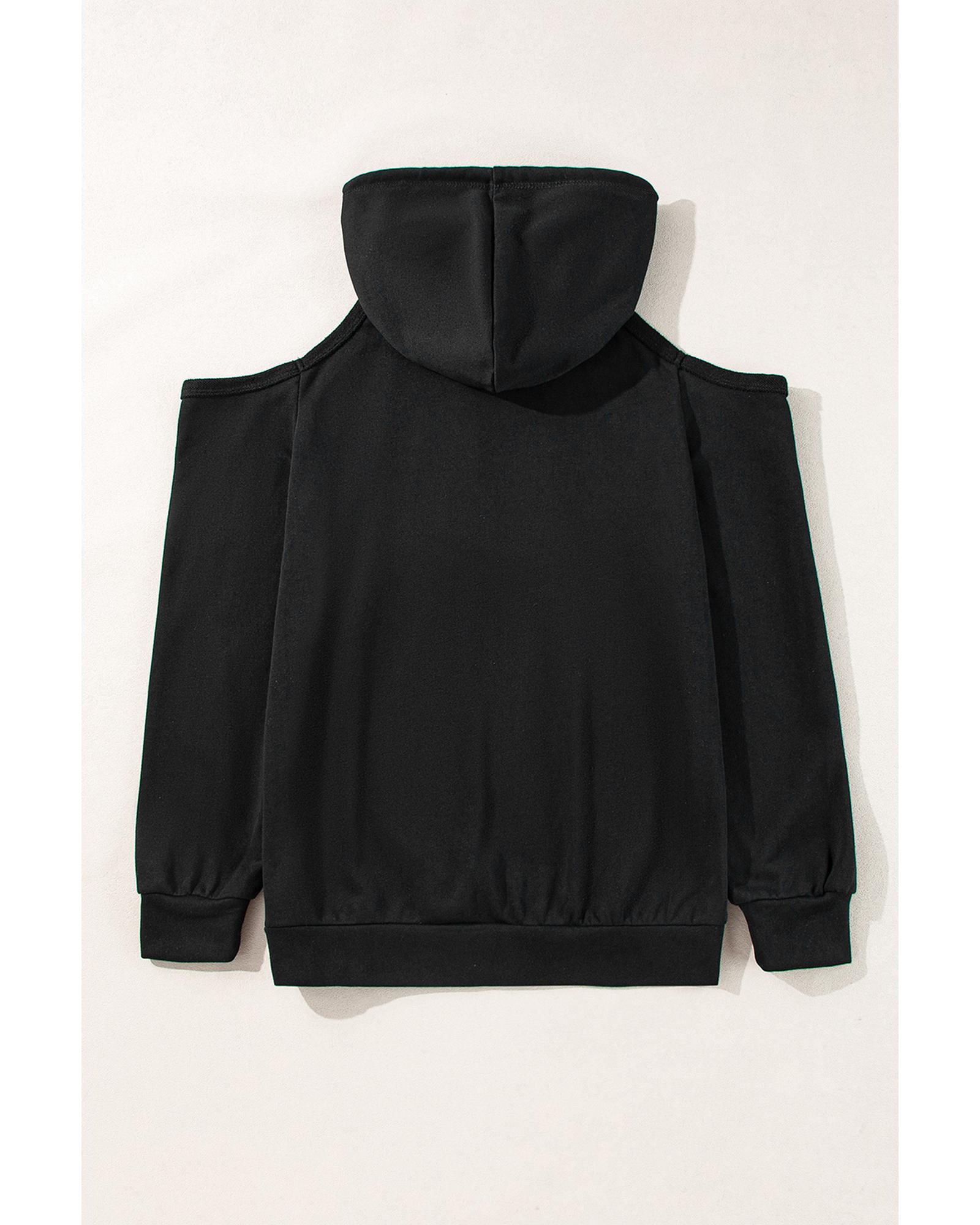 Black Exposed Seam Cold Shoulder Drawstring Hoodie – XL