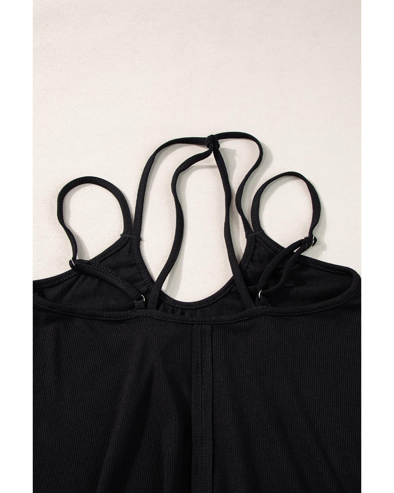 Package Content: 1 x Black Exposed Seam Detail Double Straps Tank Top