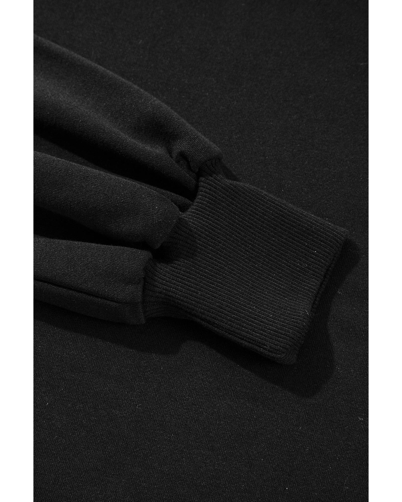 This black sweatshirt features an exposed seam design with a drop shoulder and a round neckline, offering a trendy and edgy look. It is versatile for casual wear and layering, providing comfort and style for everyday outfits.