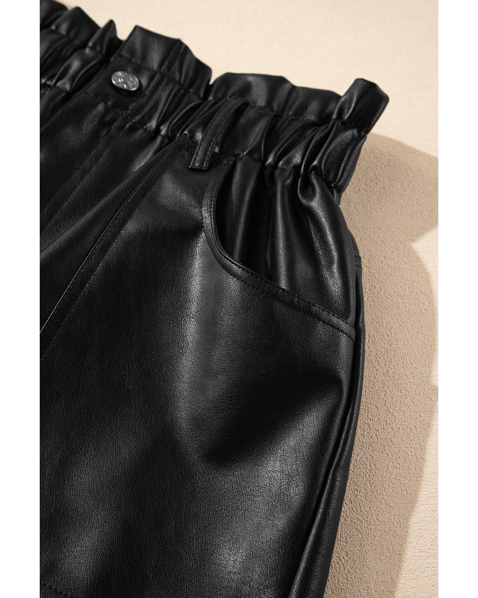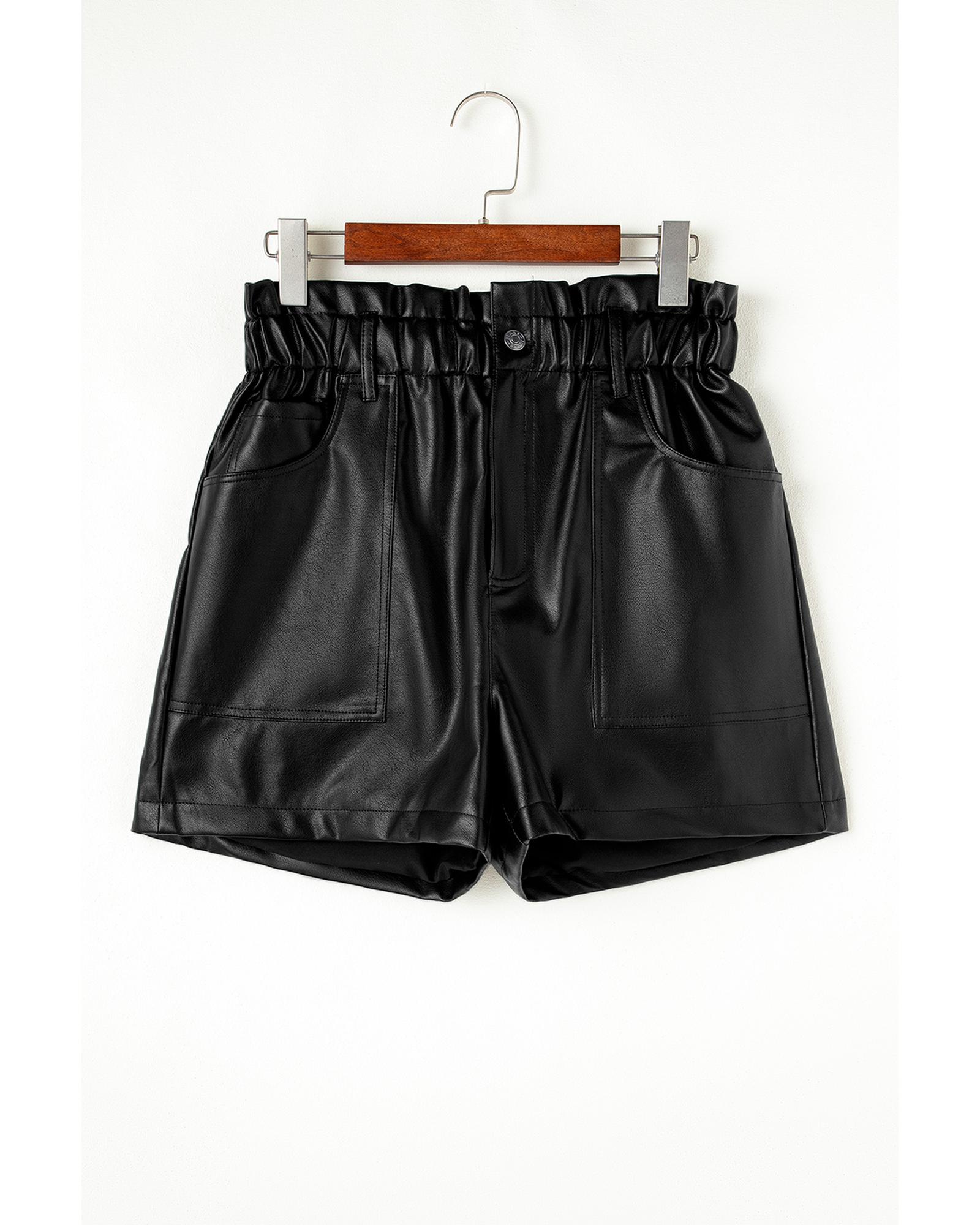 Black Faux Leather Paper Bag Waist High Rise Shorts – XL