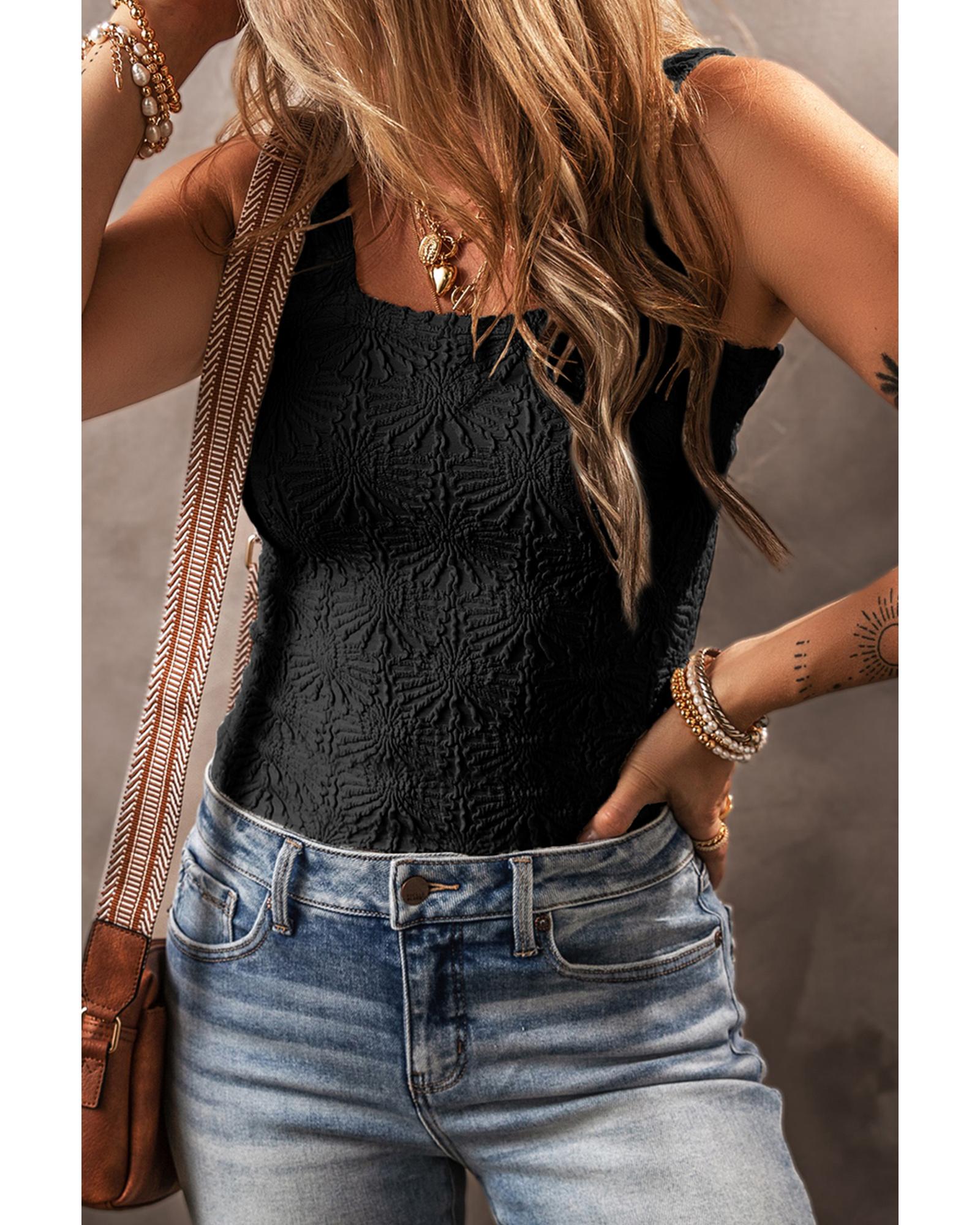 Black Floral Jacquard Square Neck Tank Top – XL