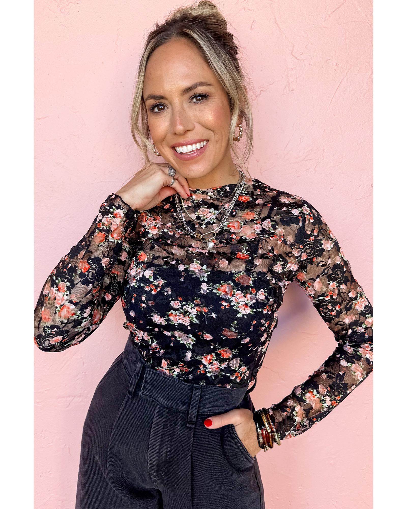 • 1 x Black Floral Mesh Sheer Long Sleeve Top
