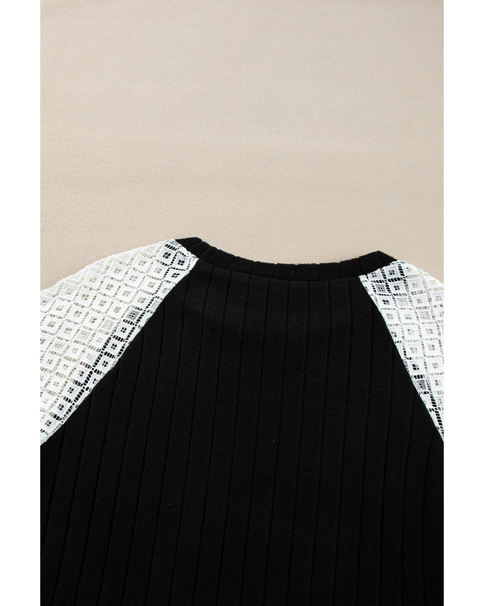 This long sleeve ribbed blouse features a stylish floral patchwork design, combining elegance with a trendy fitted silhouette. Made from soft, textured knit fabric, it offers both comfort and a feminine appearance suitable for various occasions.