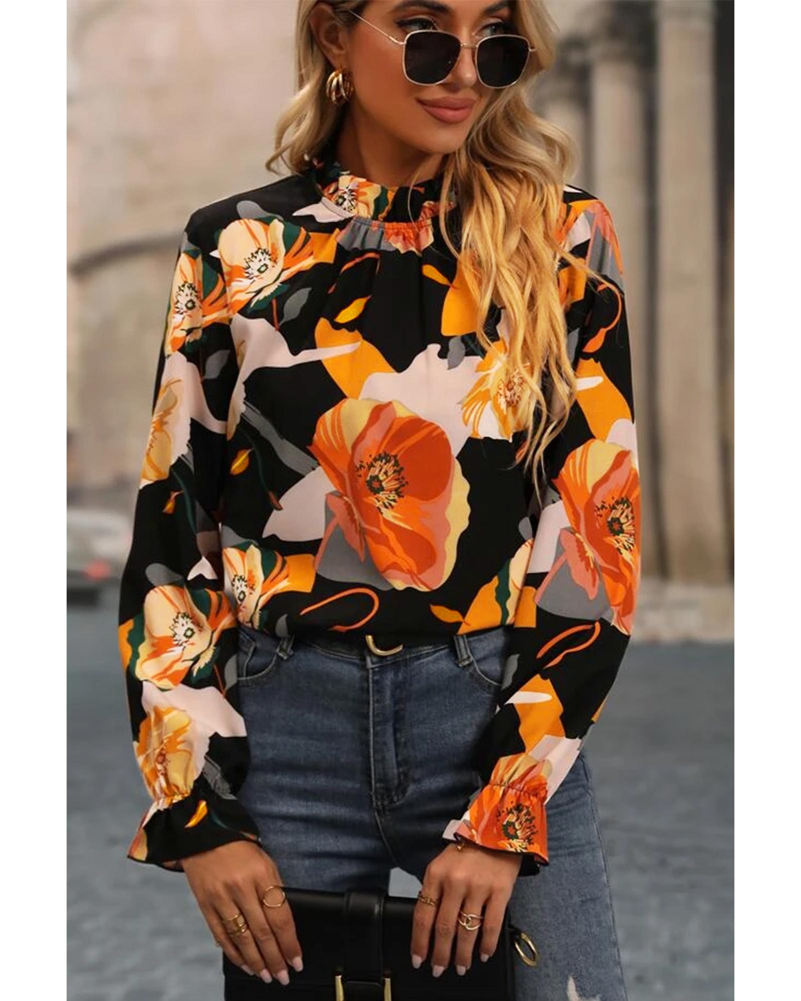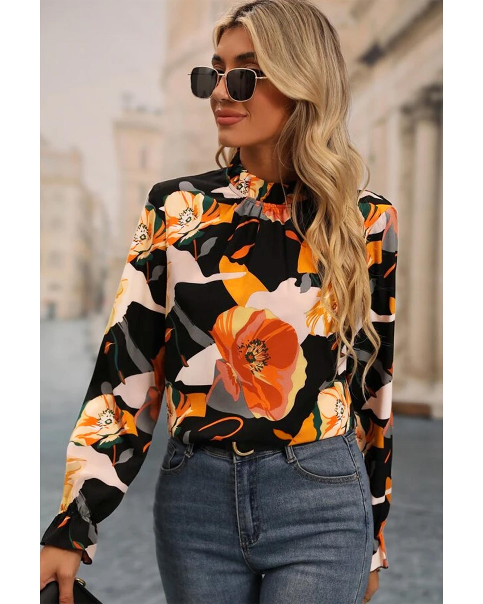 This floral print mock neck blouse combines a trendy fitted design with elegant details, making it a versatile addition to your wardrobe. Crafted from lightweight and soft fabric, it offers a comfortable and sleek fit suitable for various occasions.