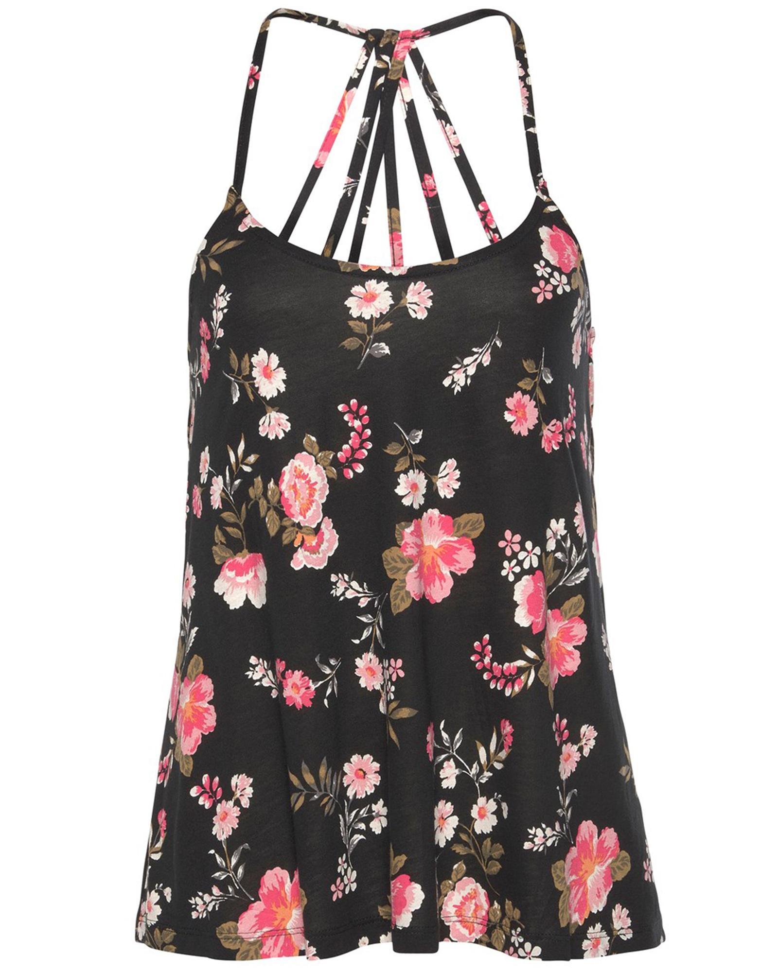 Black Floral Spaghetti Straps Strappy Back Tank Top – L