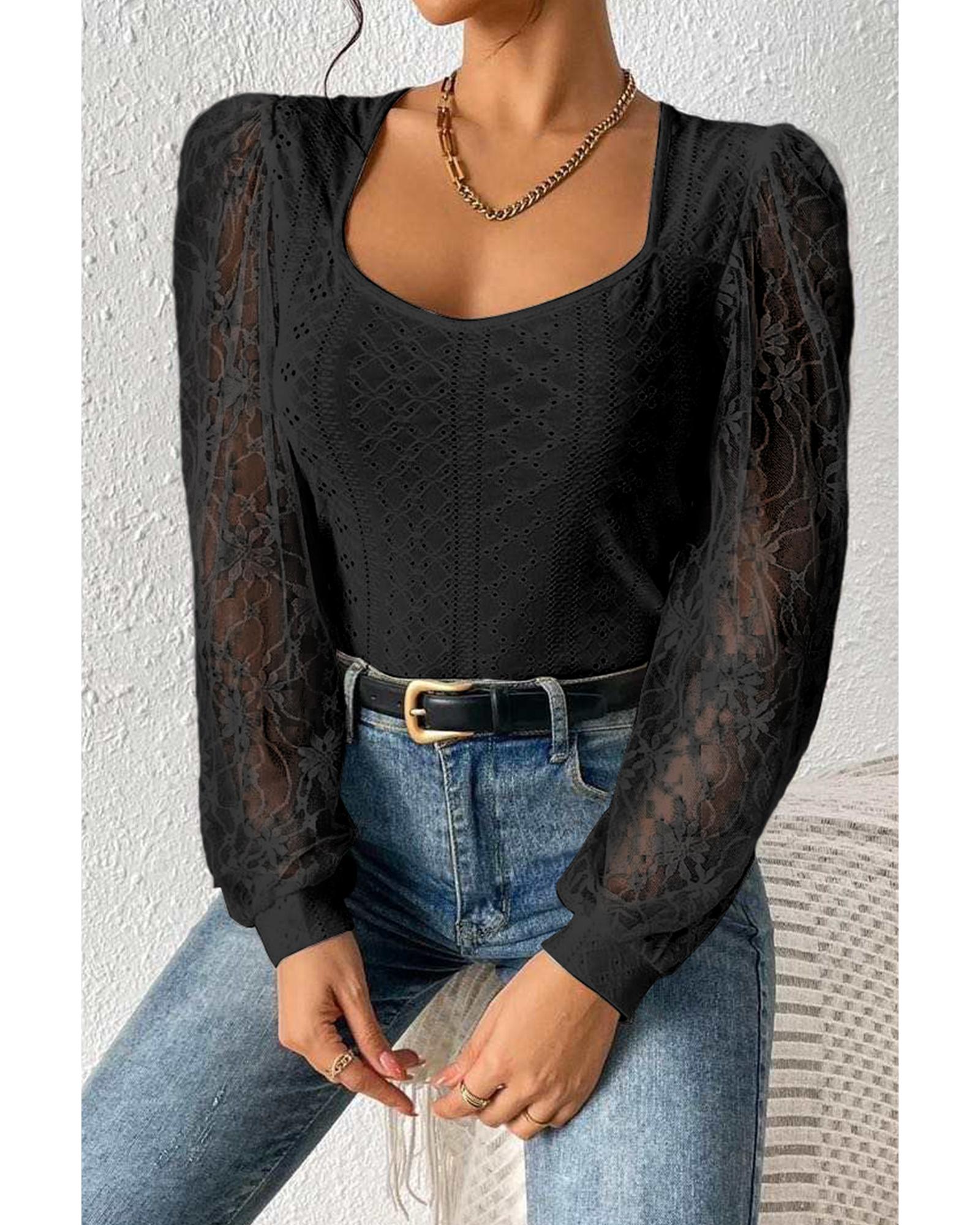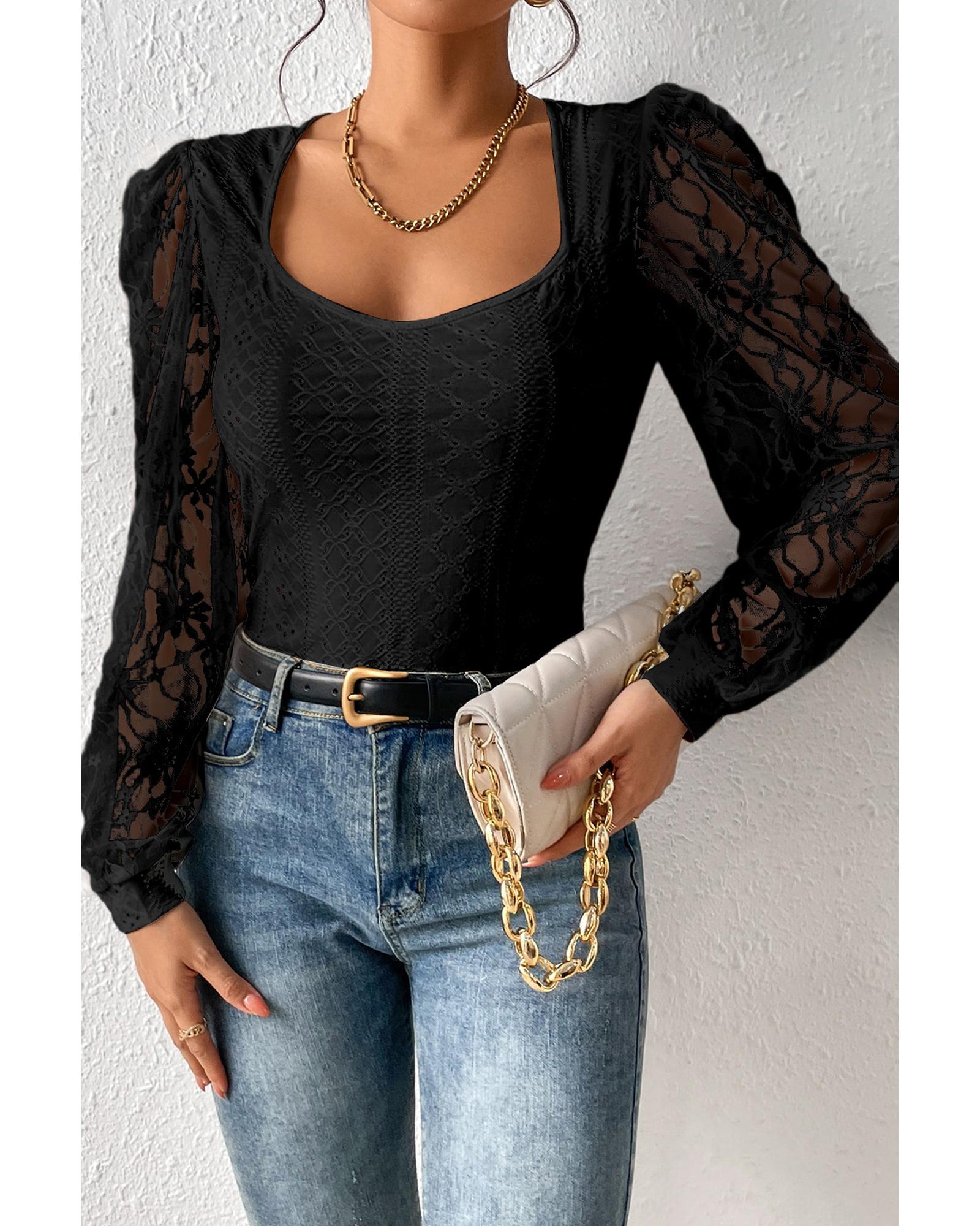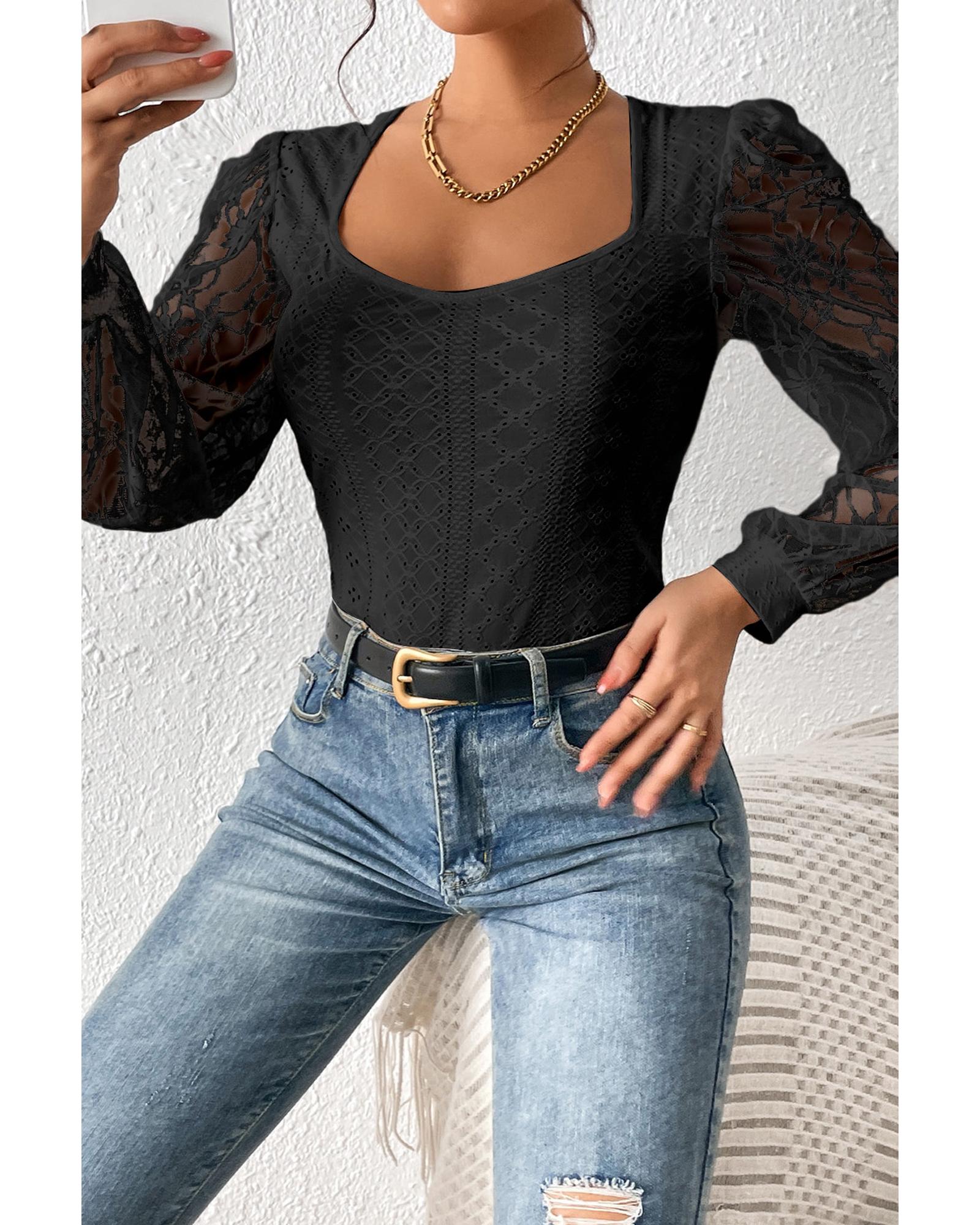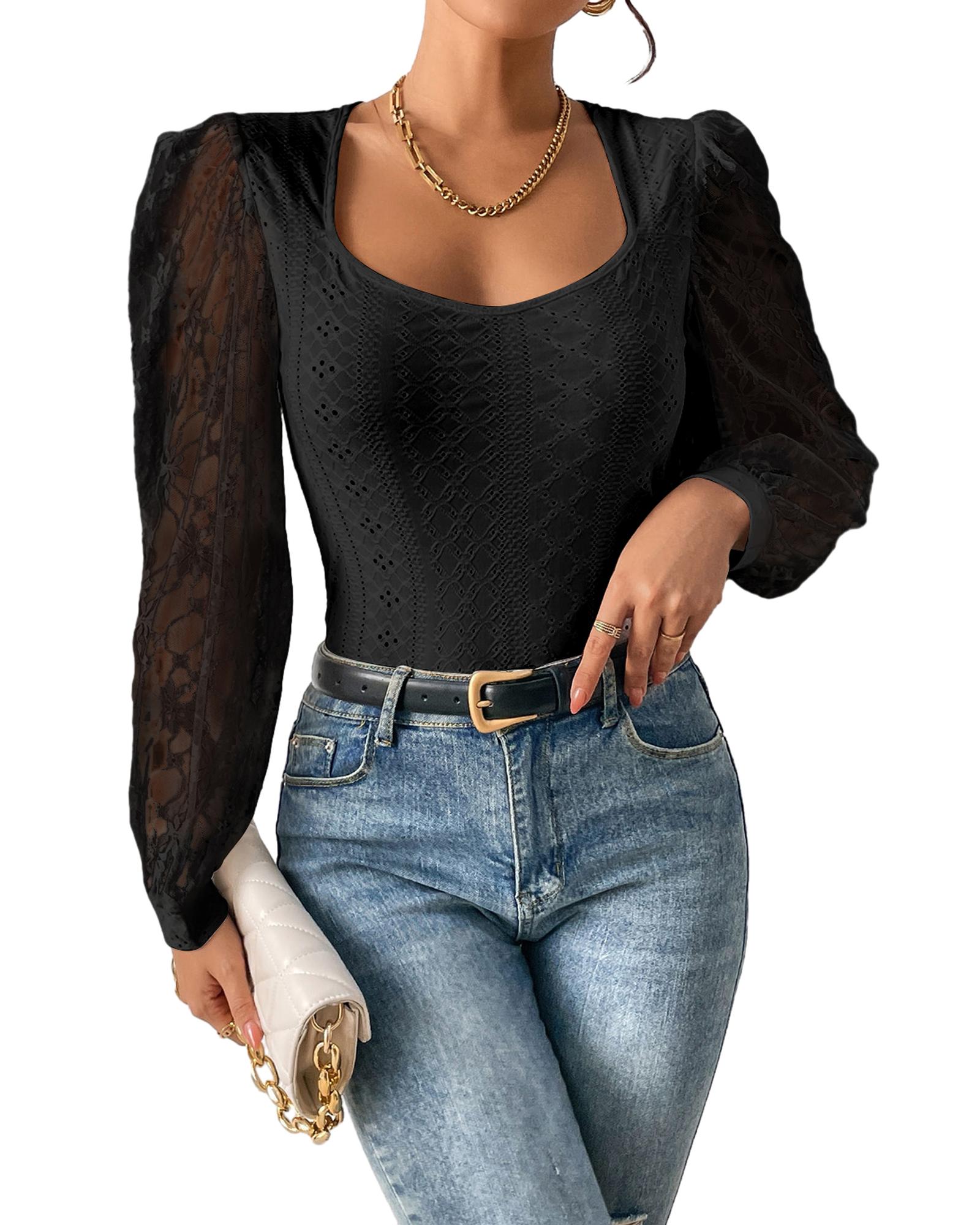 This contrast lace bishop sleeve bodysuit combines elegant design with a trendy fitted silhouette. Crafted from high-quality materials, it features striking contrast lace details and dramatic bishop sleeves, making it a versatile addition to any wardrobe. Suitable for all genders, this black bodysuit offers a timeless and stylish look that can be dressed up or down.