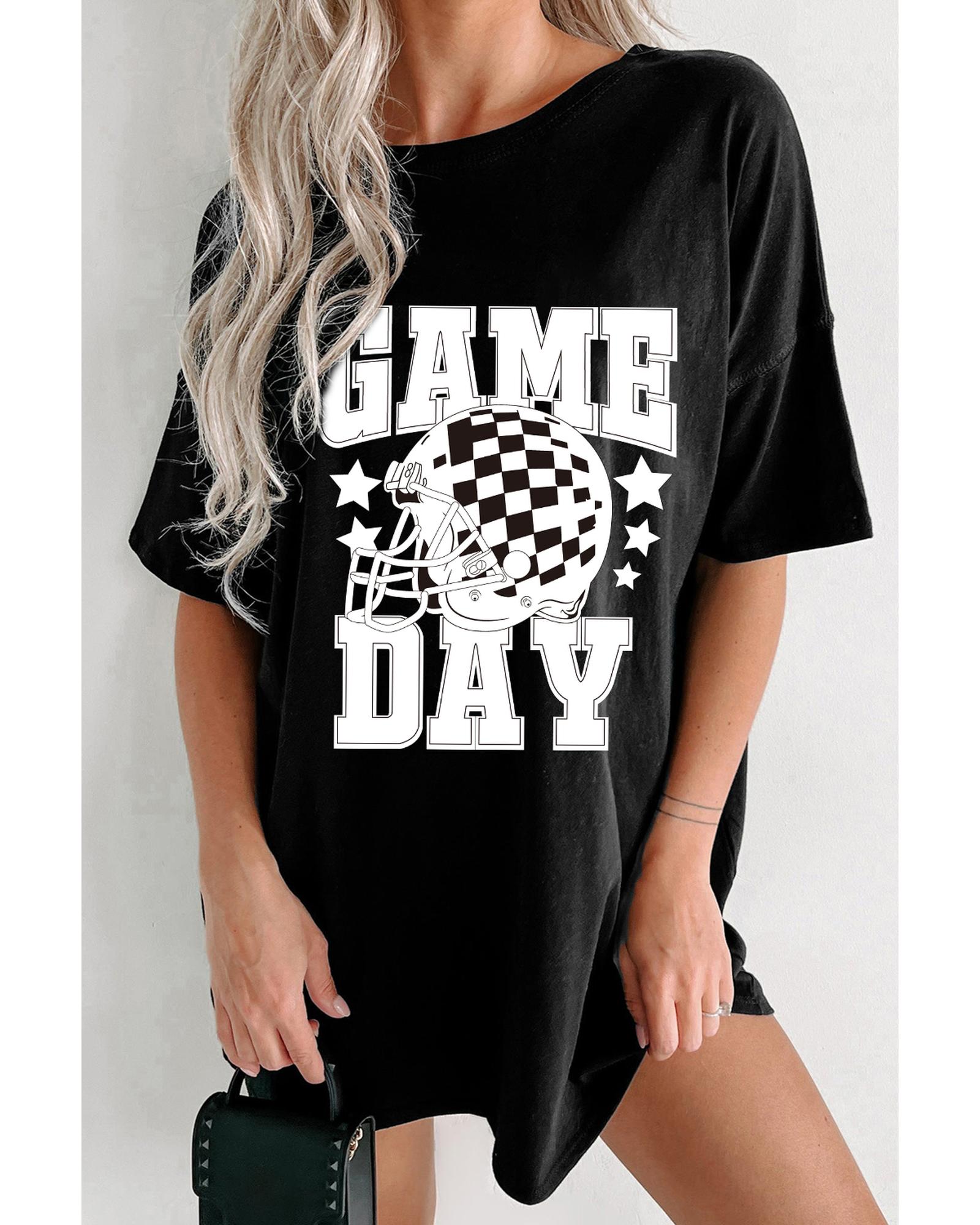 Black GAME DAY Checkerboard Rugby Football Helmet T Shirt – XL