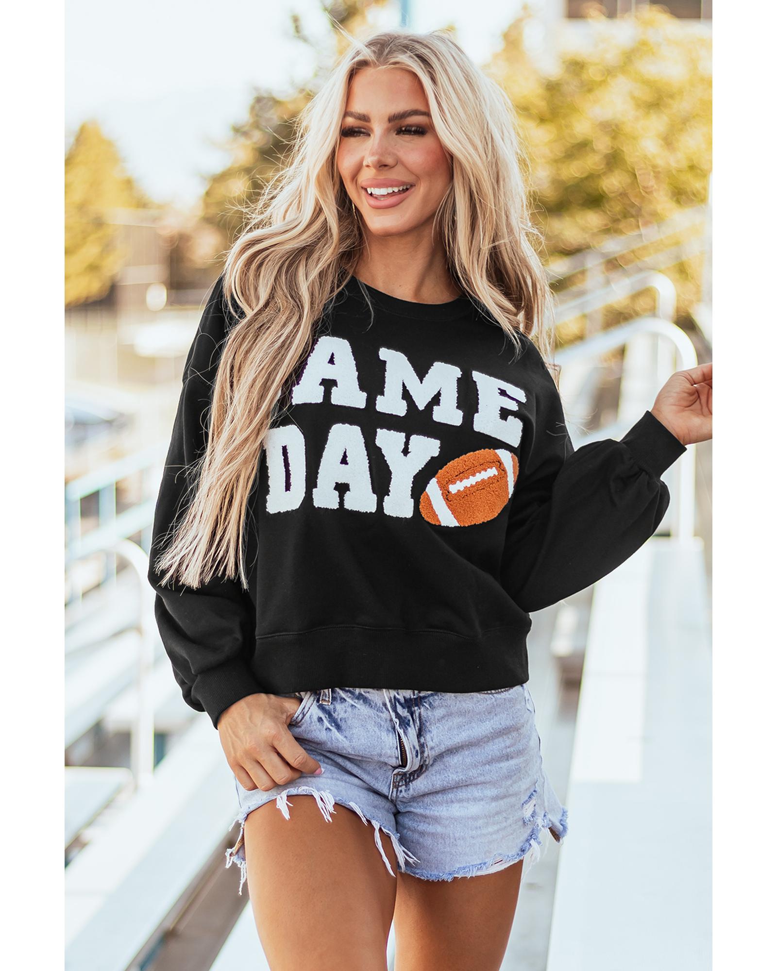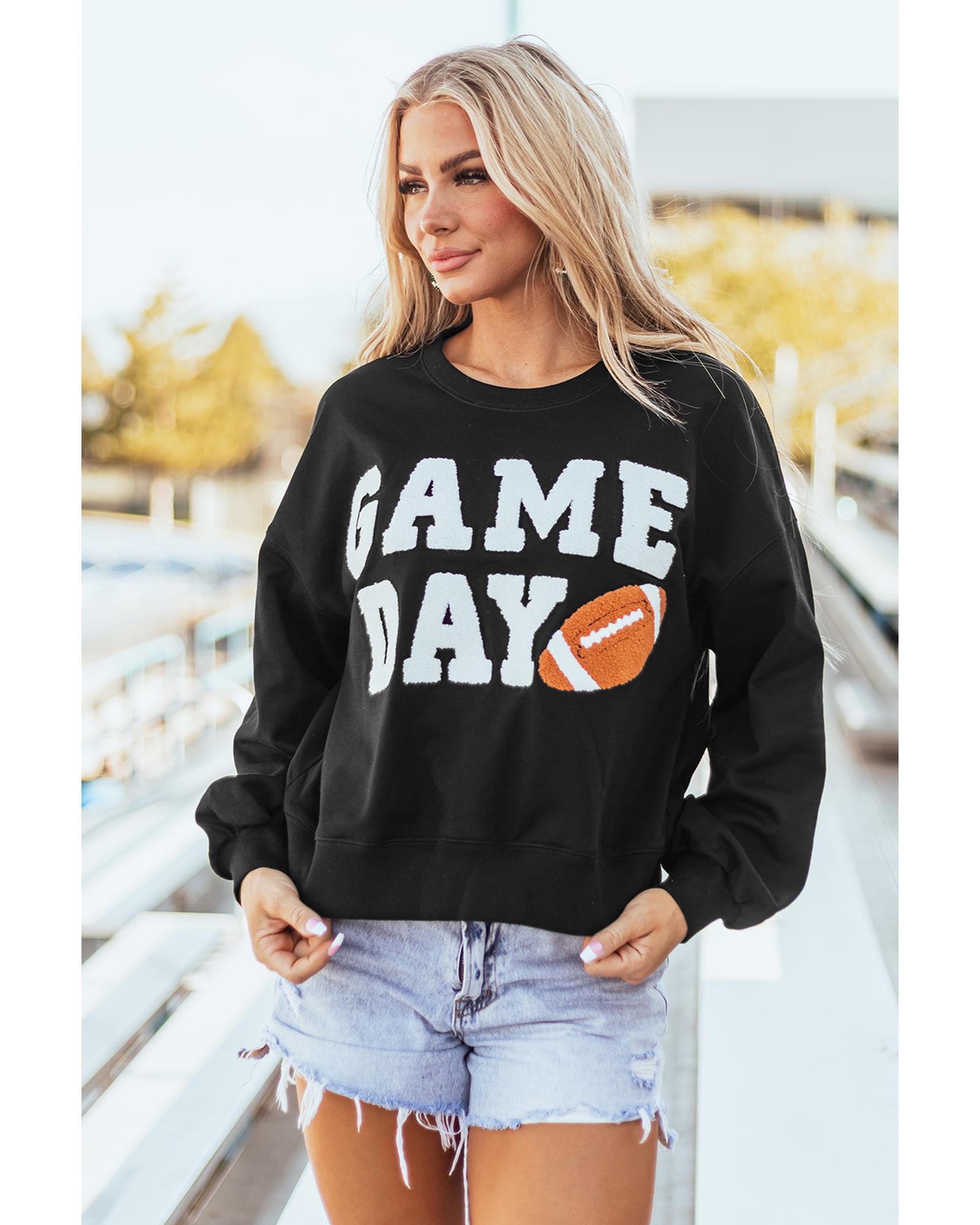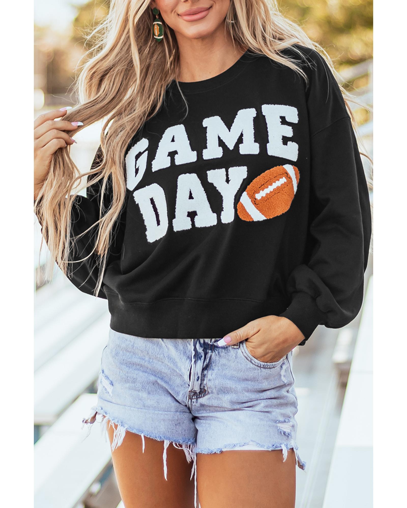 Black GAME DAY Graphic Varsity Pullover Sweatshirt – M